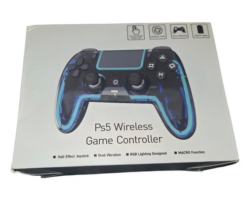 It features a transparent design with customizable RGB lighting and utilizes Hall Effect joysticks to prevent stick drift.