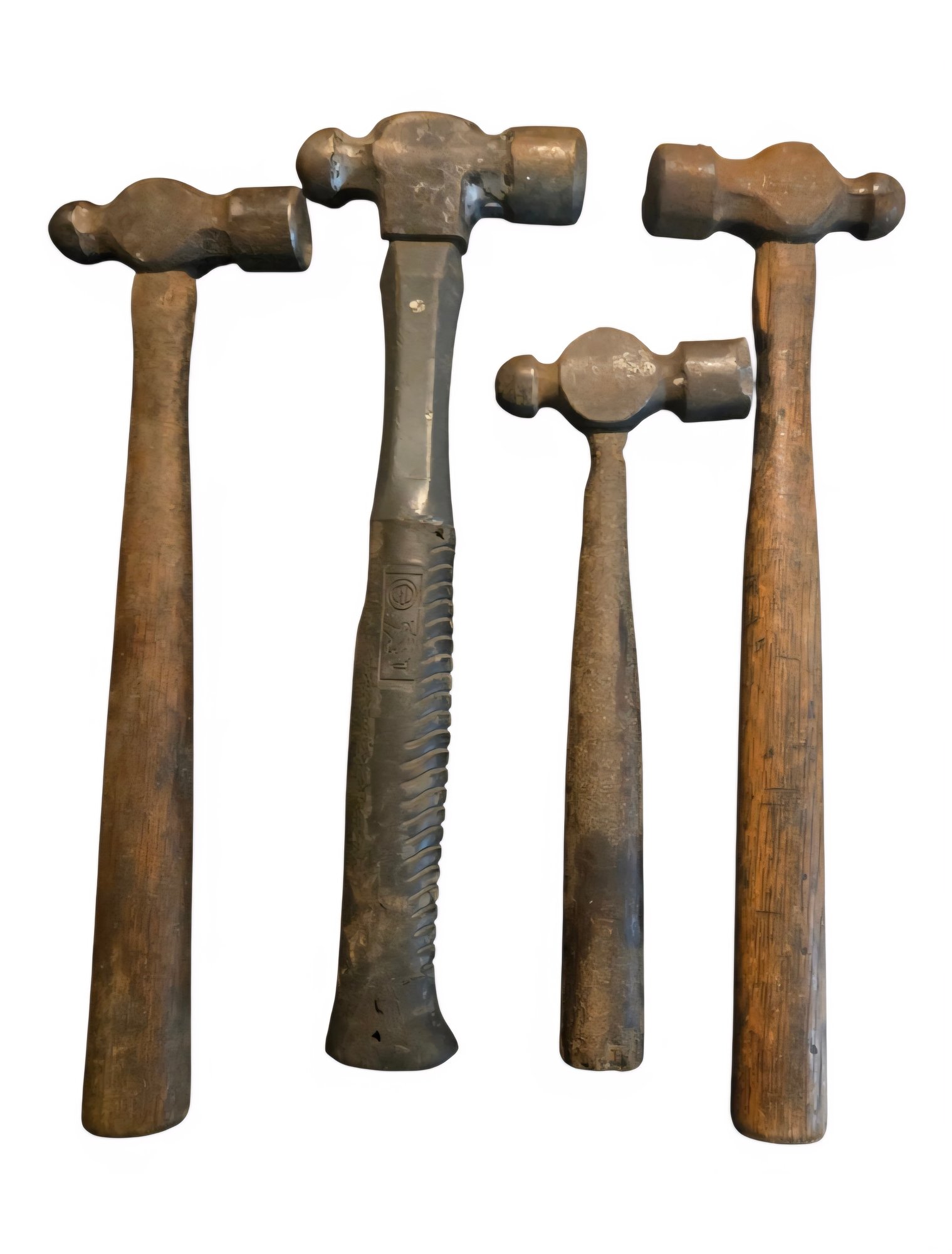 Four ball-peen hammers, various sizes.