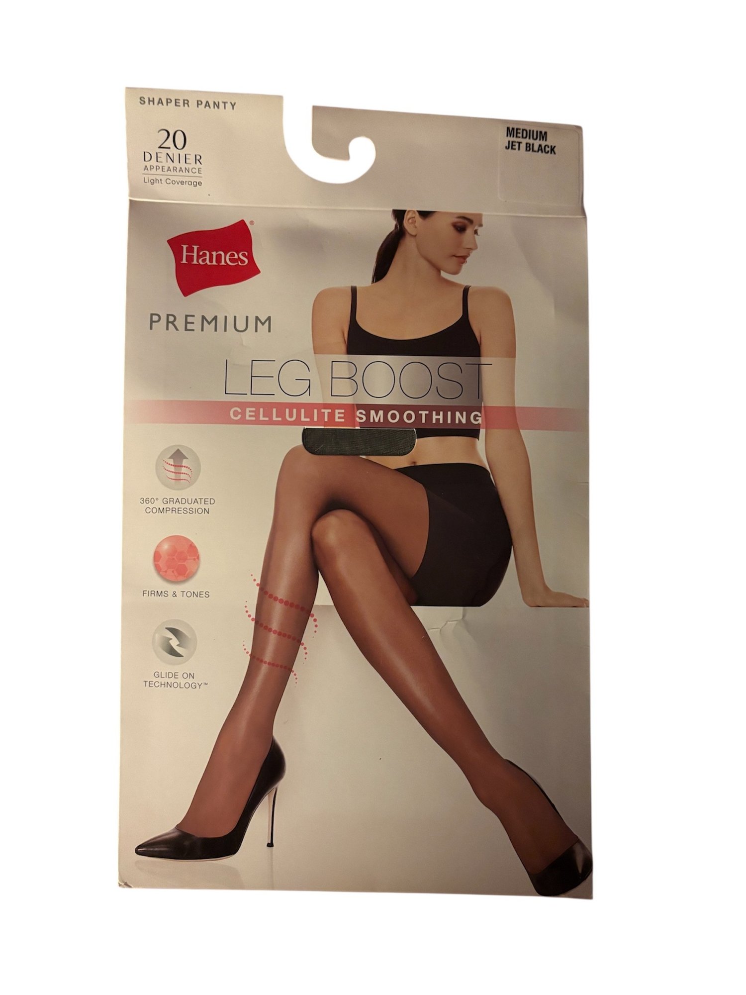 Hanes Premium Women's Perfect Leg Boost Cellulite Smoothing Tights in the medium size and jet black color.