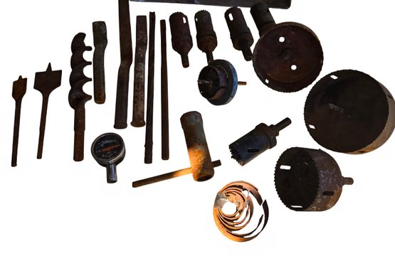 Several different size hole saw bits.