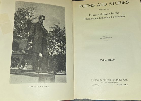 Vintage hardcover book titled "POEMS AND STORIES REQUIRED BY NEBRASKA COURSE OF STUDY"