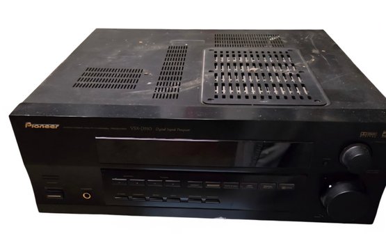 The front panel includes a digital signal processor and supports various audio and video inputs, including DVD/LD.