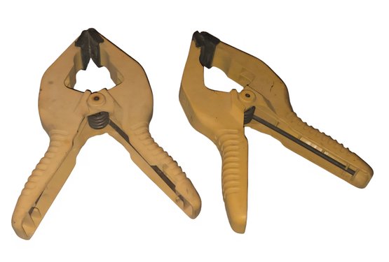 2- Yellow quick grip spring clamps. As seen in photos one of the handles have a Crack in it.
