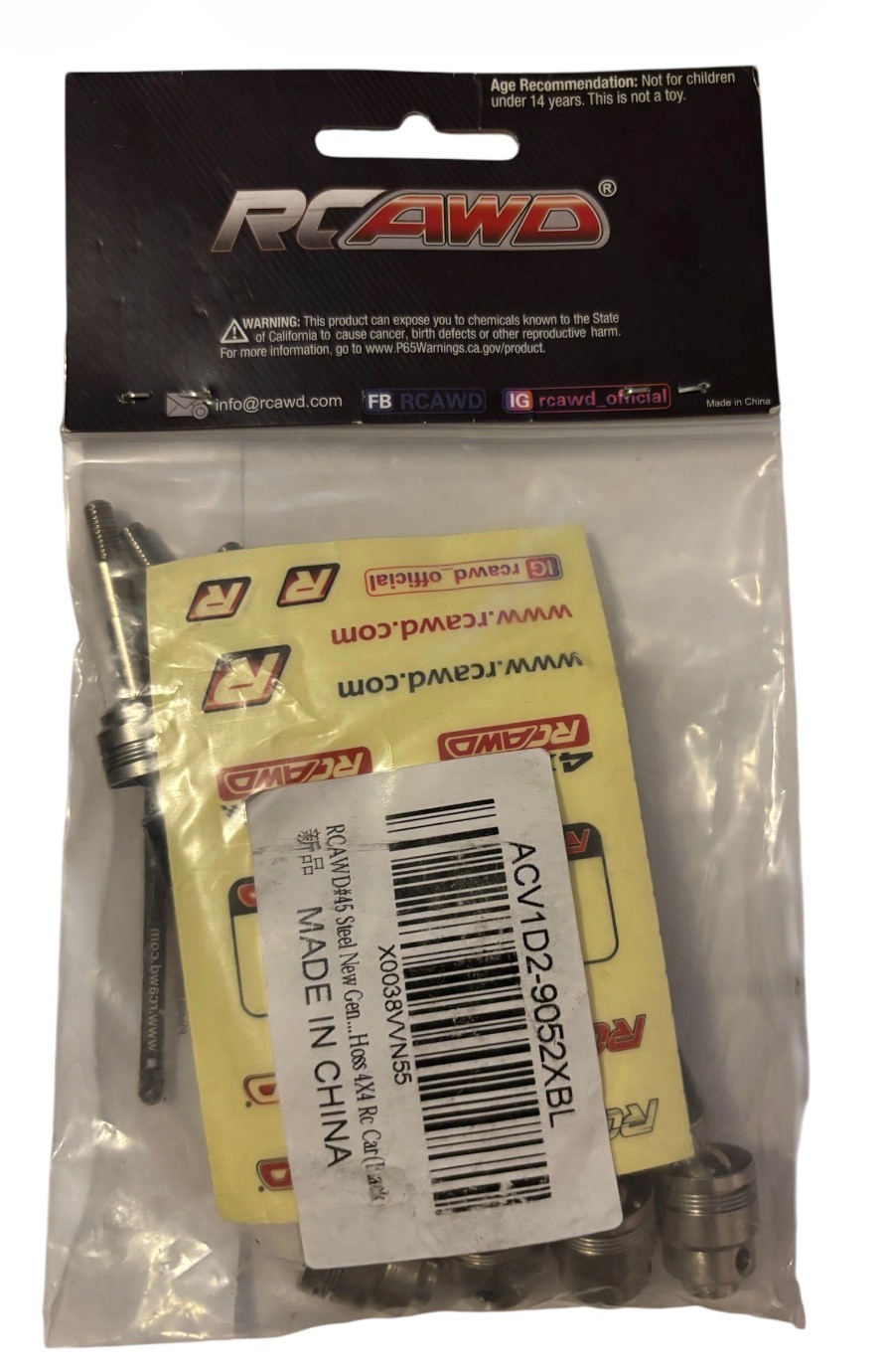 A set of RCAWD CVD drive shafts designed for ARRMA radio-controlled vehicles. Fits various ARRMA 1/8 and 1/10 scale models including the Mojave 4S, Big Rock, Granite, Senton, and Vorteks.