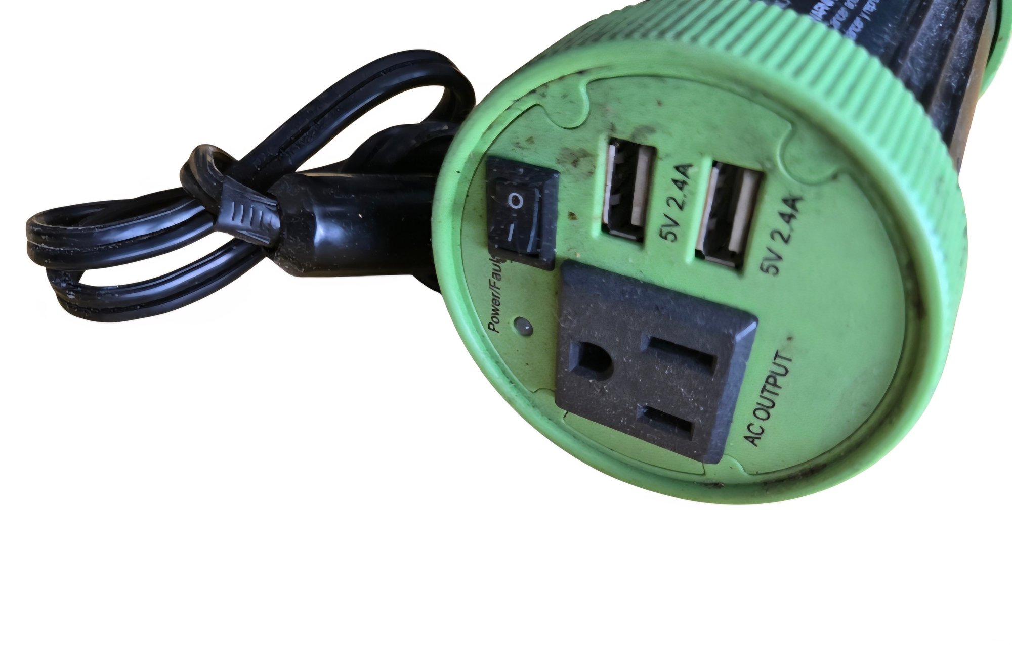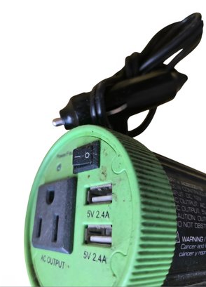 Features: Provides AC outlet and USB port(s) for charging devices like phones or laptops while driving.
