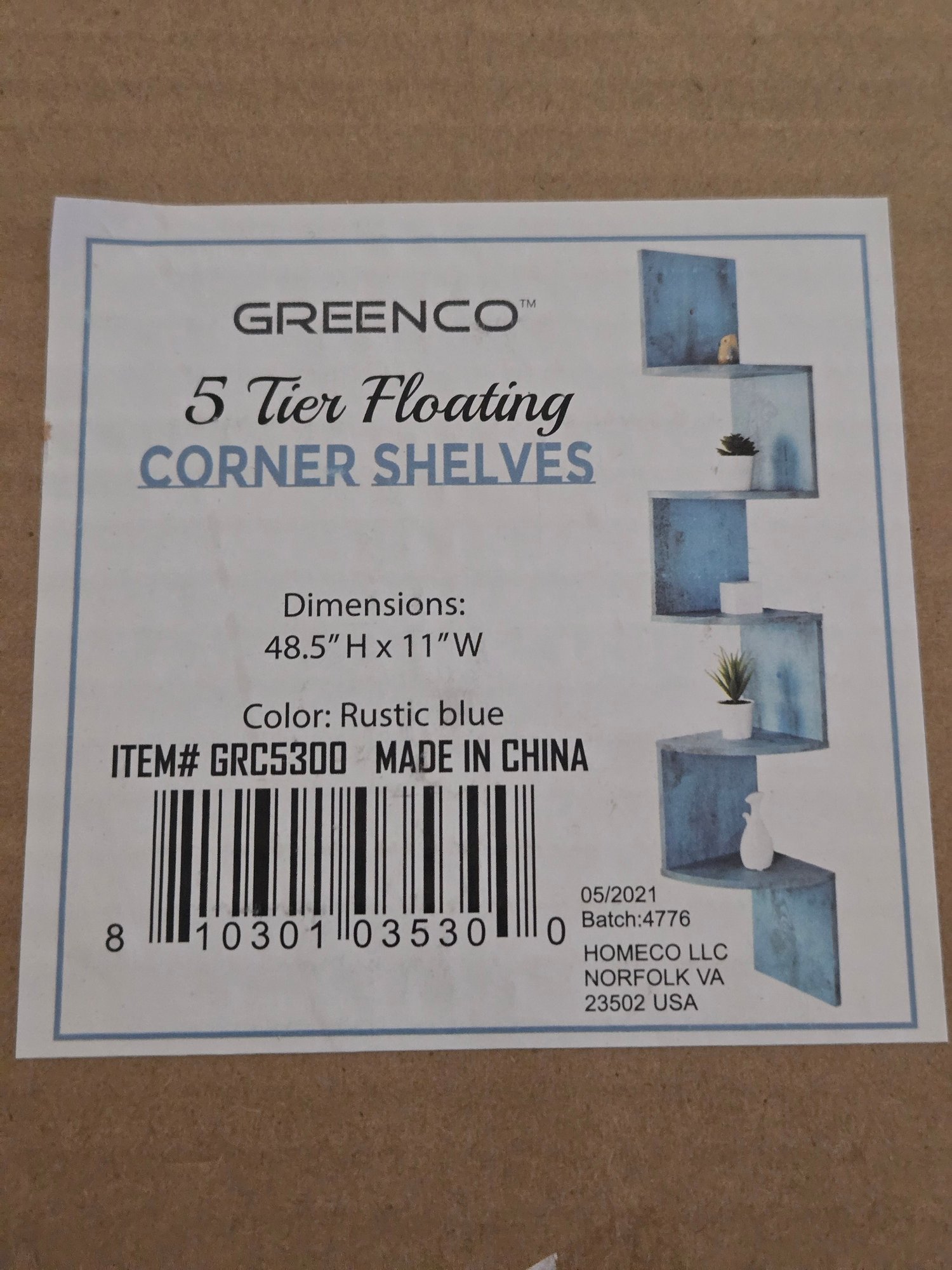 5 Tier floating corner shelves new in box.