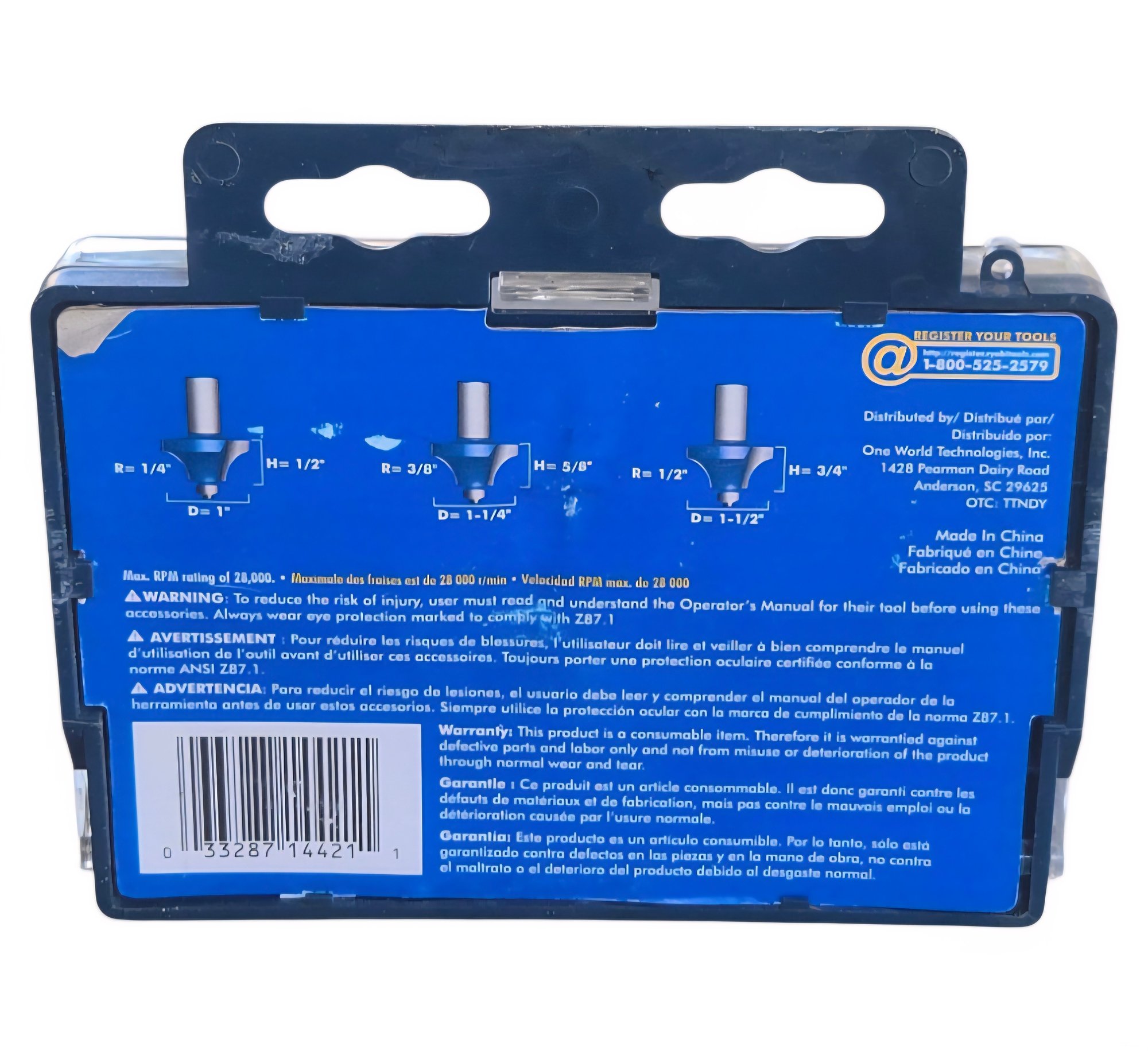 Ryobi 3-Piece Roundover Router Bit Set (Model A25RS31).