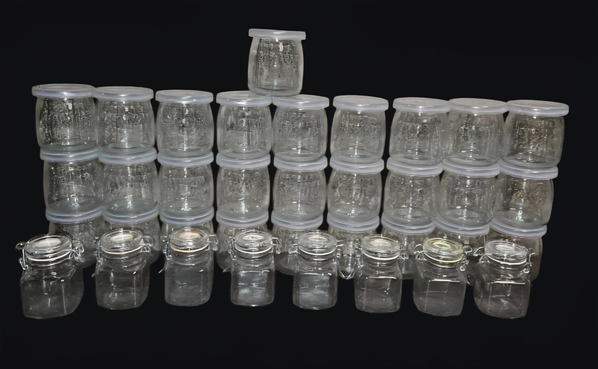 28- small glass jars with clear snap lids 3"tall x 2 1/2" round
