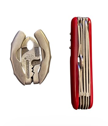 Victorinox Knife: Iconic red multi-tool featuring multiple blades, screwdriver, bottle opener, and more, manufactured in Switzerland.