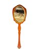 It features a decorative, carved handle and an oval mirror with a beveled edge, characteristic of the ornate style of the 1920s and 1930s.