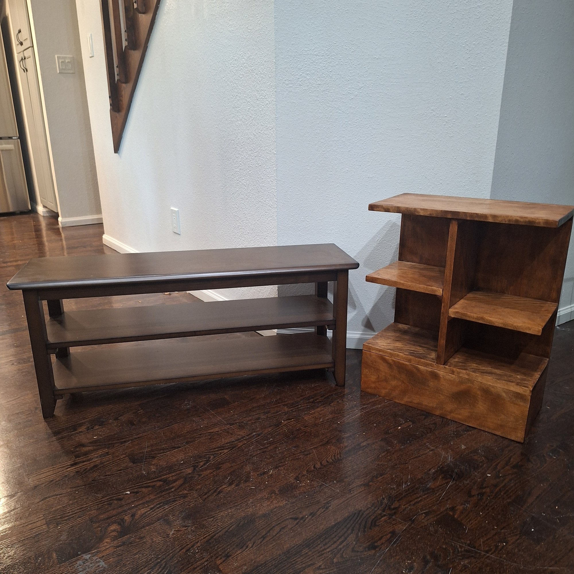Wooden Shelves, 2 shelves, Measures, Approximately 39"L×12"D×17"T, Second one Measures Approximately 19"W×10"D×24"T