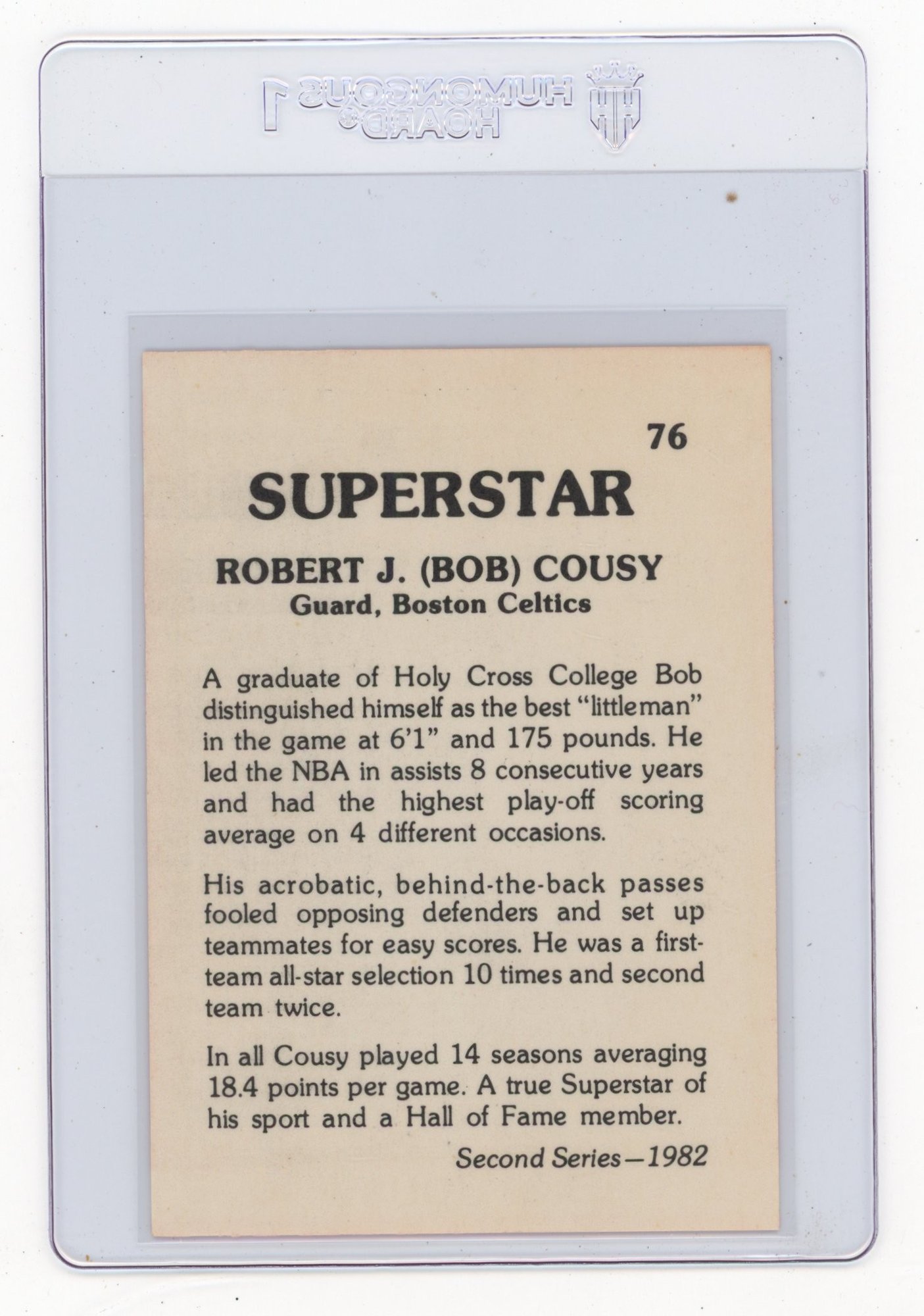 1982 Superstar Bob Cousy Basketball Card