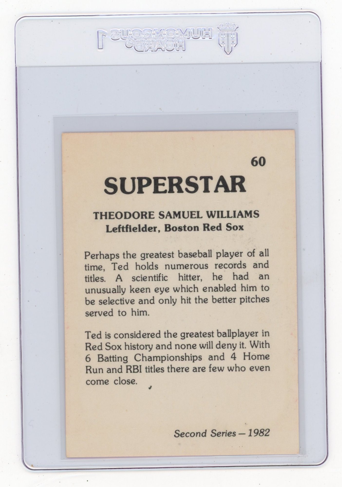 1982 Superstar Ted Williams Baseball Card