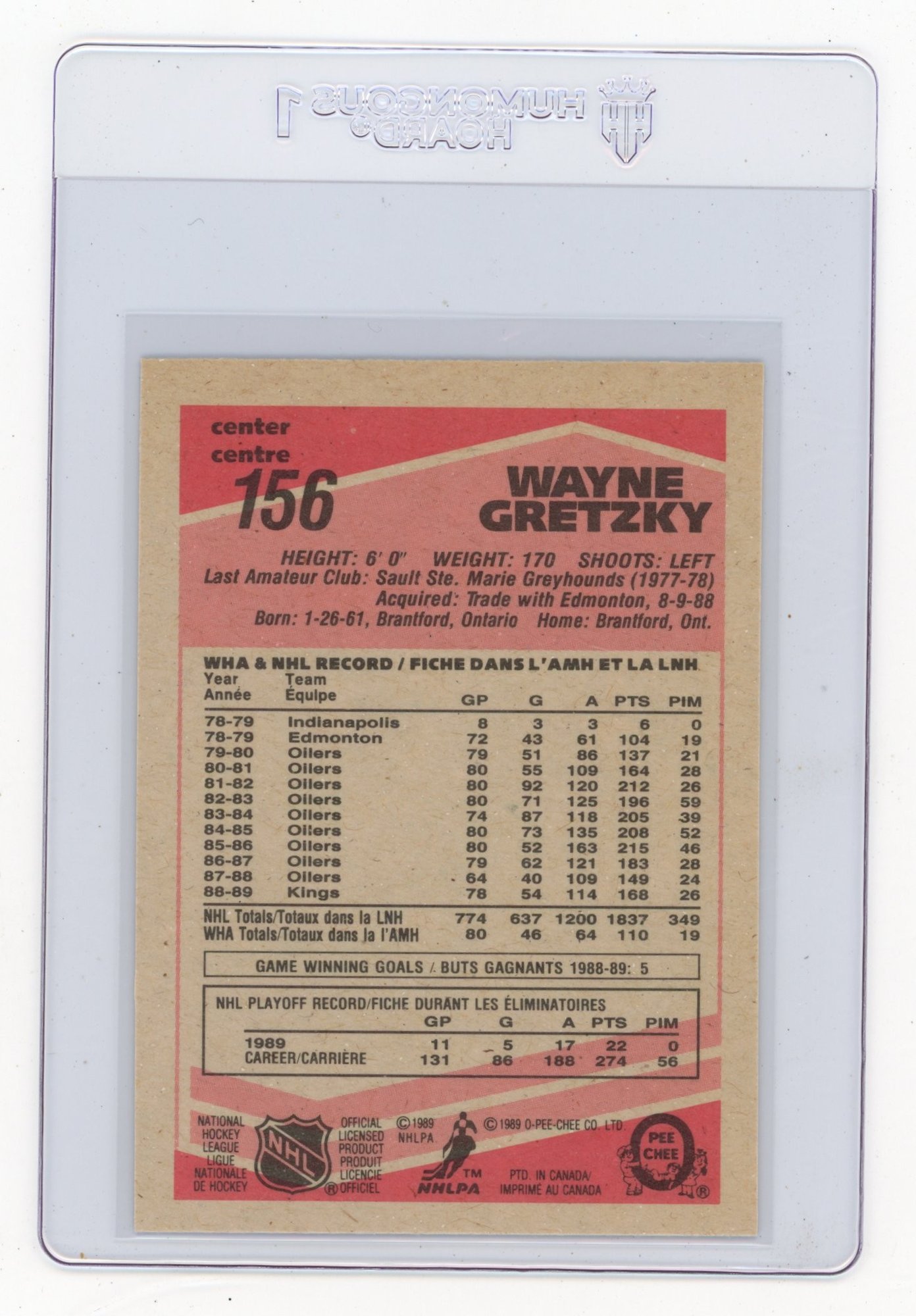 1989 O-pee-chee Wayne Gretzky Hockey Card