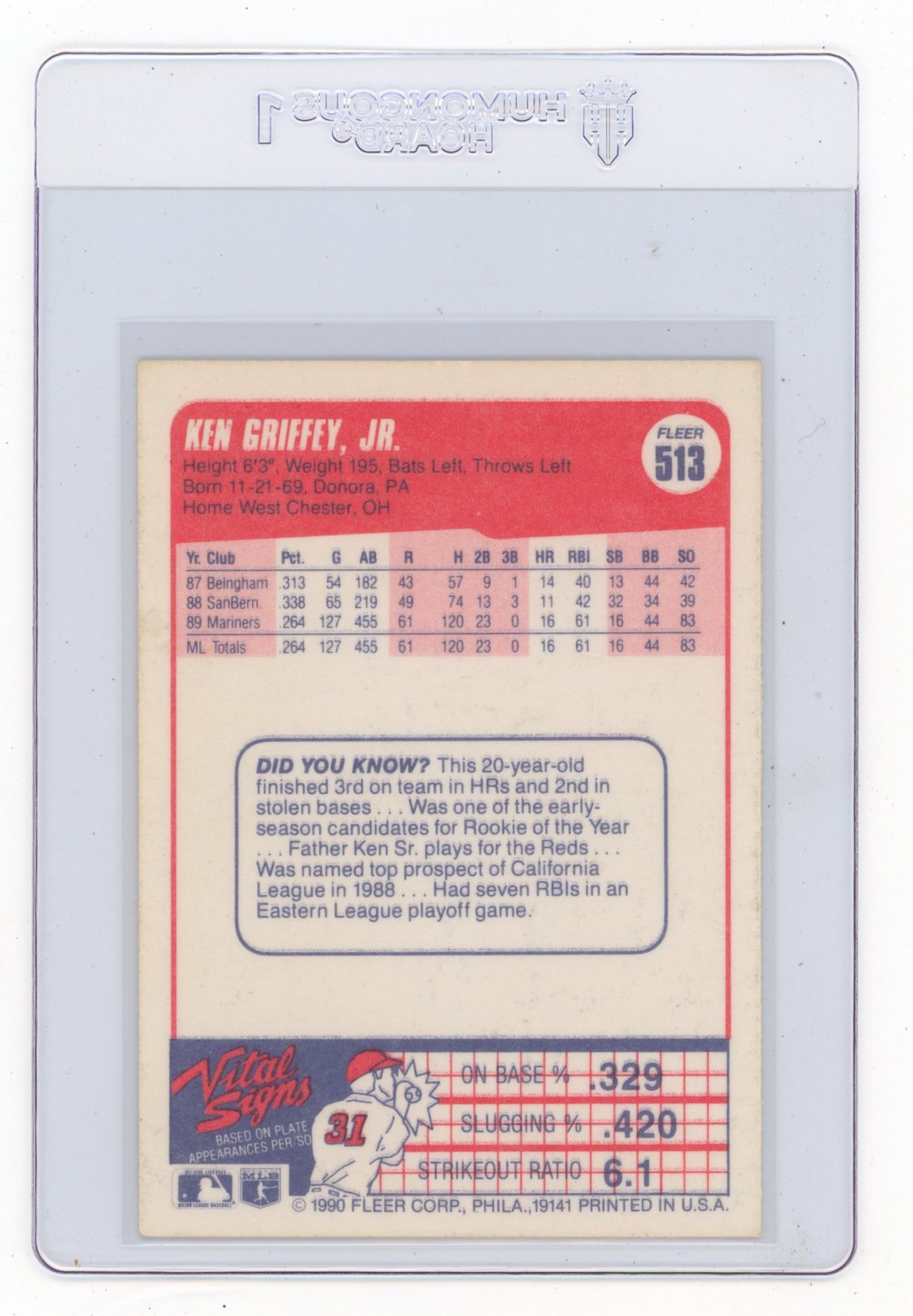 1990 Fleer Ken Griffey Jr. Baseball Card