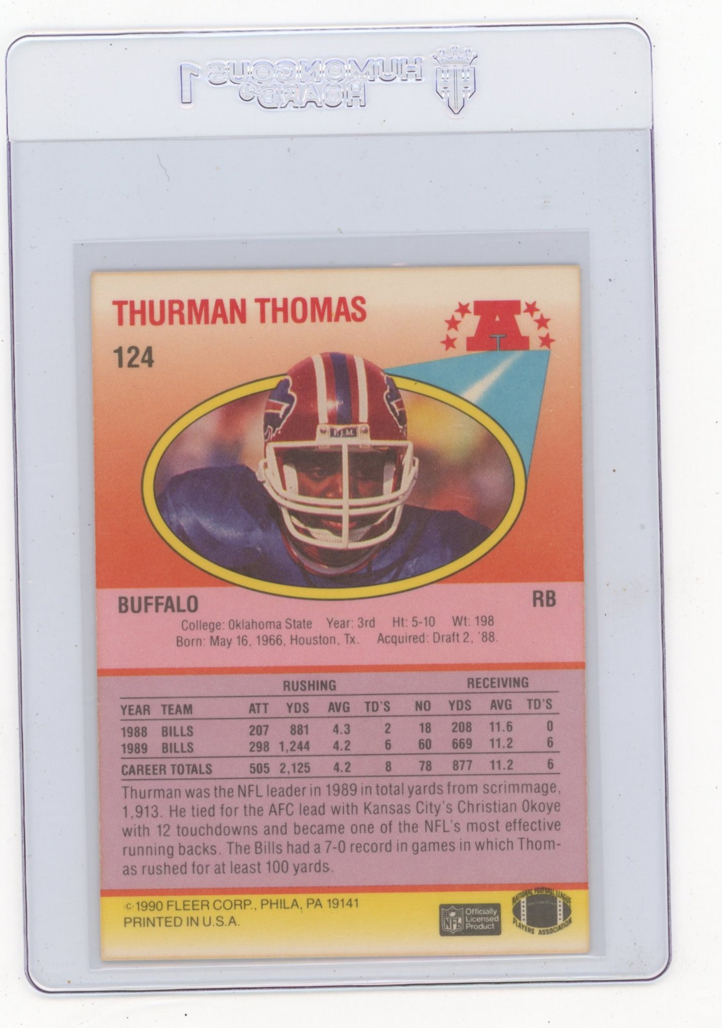 1990 Fleer Thurman Thomas Football Card