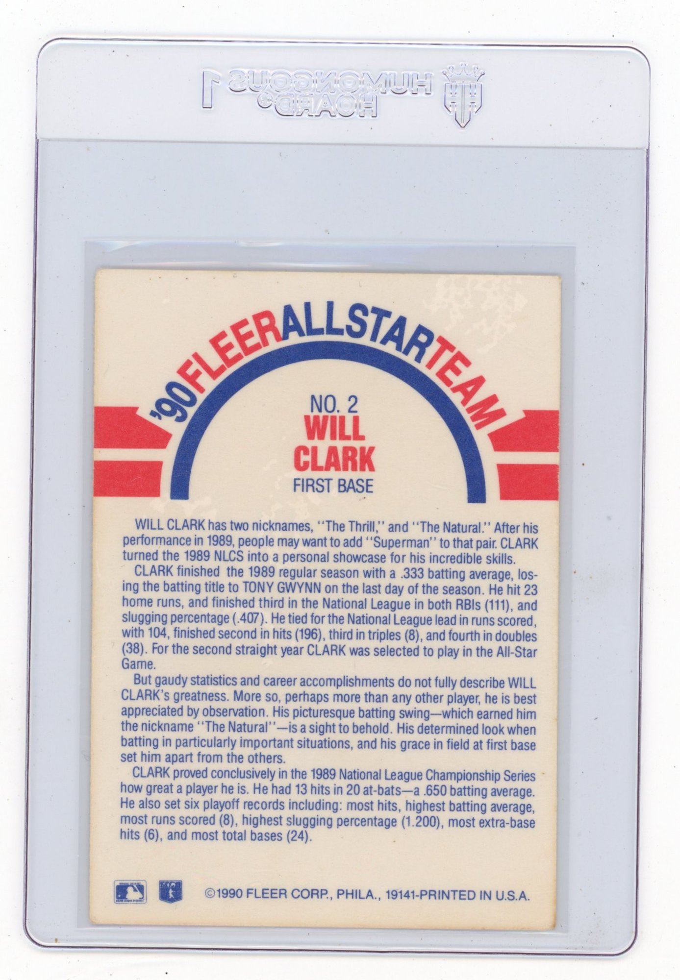 1990 Fleer Will Clark All Star Team Baseball Card