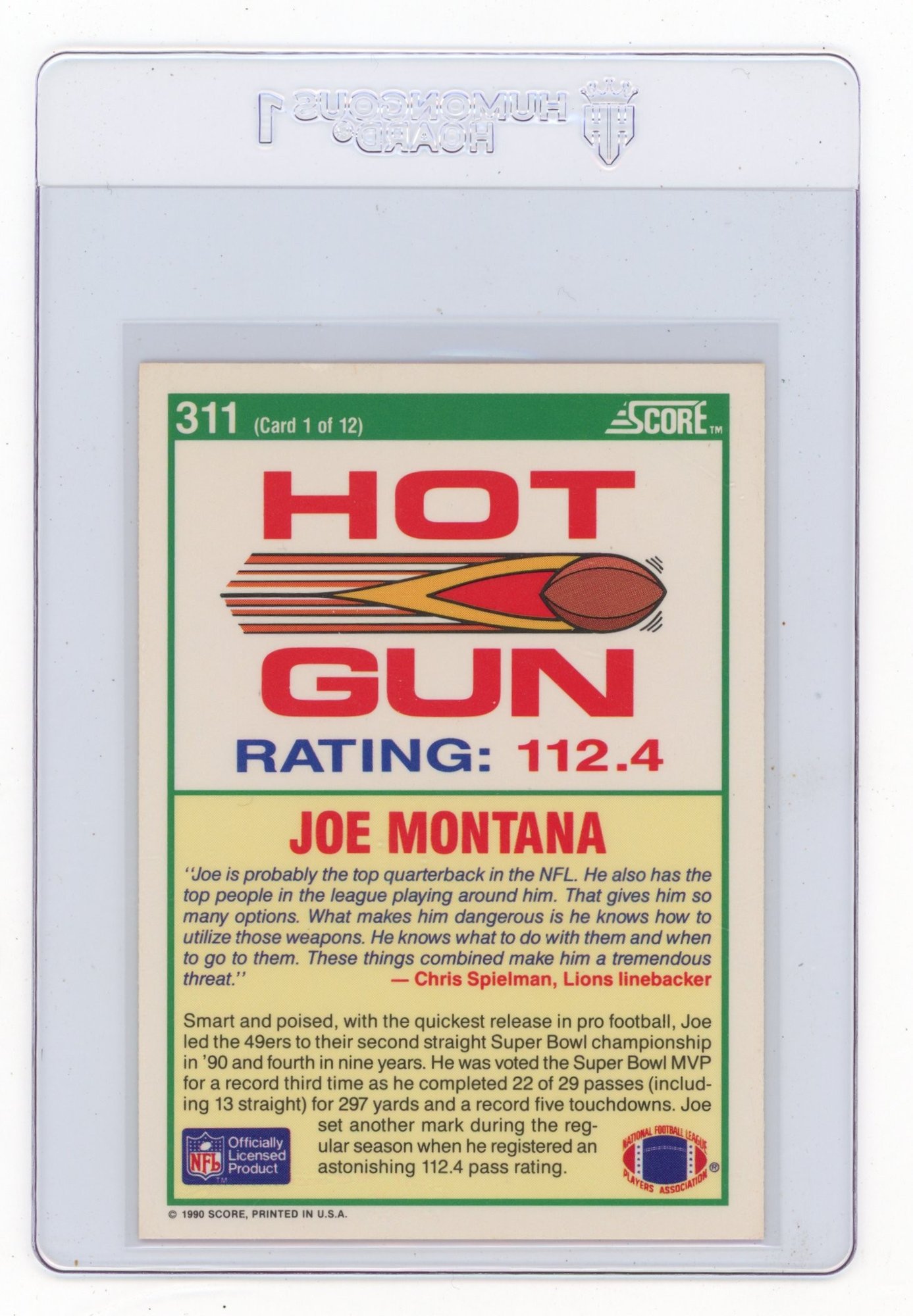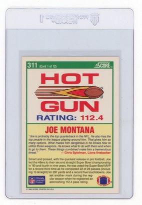 1990 Score Joe Montana Hot Gun Football Card