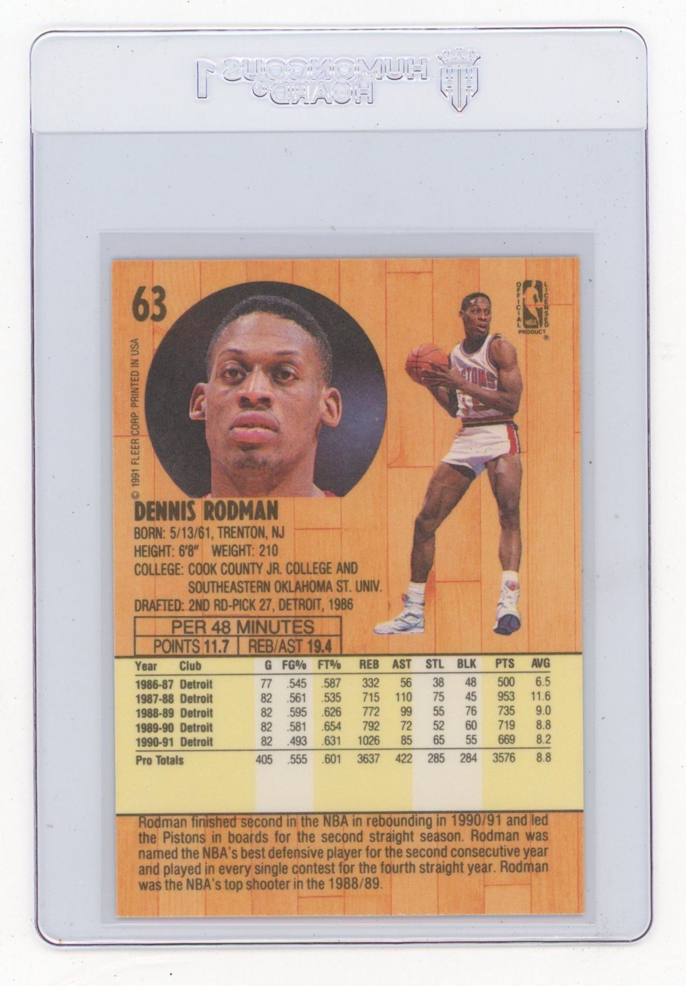 1991 Fleer Dennis Rodman Basketball Card