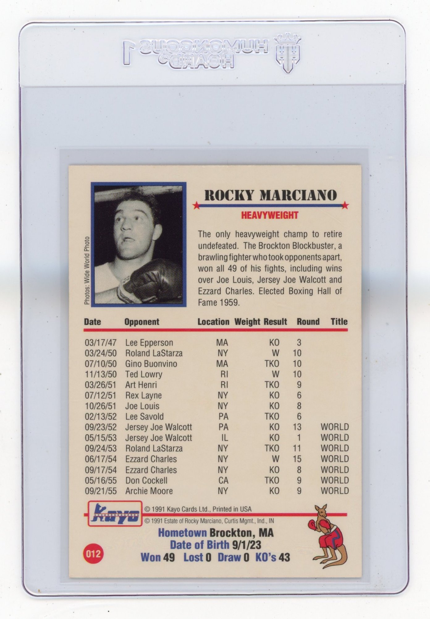1991 Kayo Rocky Marciano Boxing Card