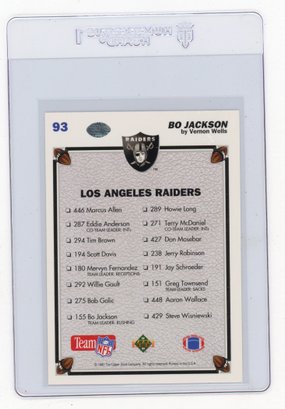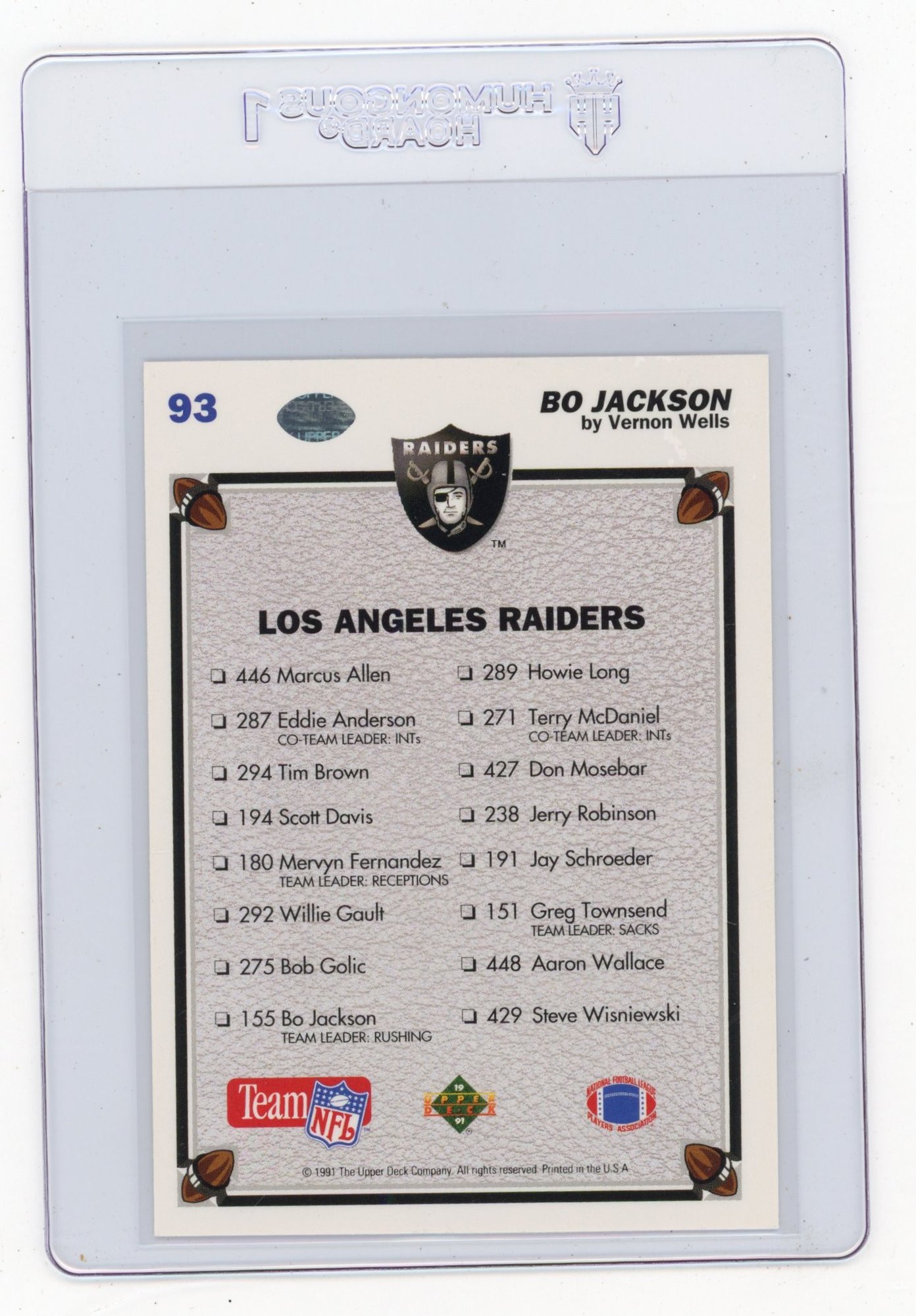 1991 Upper Deck Bo Jackson Los Angeles Raiders Checklist Football Card