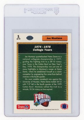 1991 Upper Deck Joe Montana Football Heroes Football Card