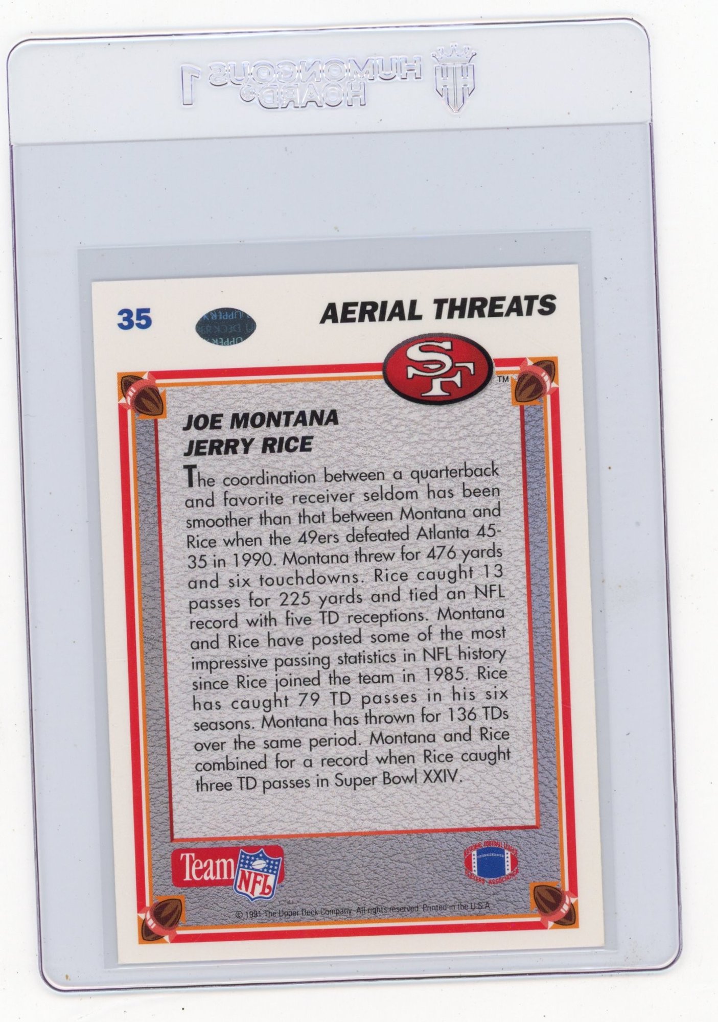 1991 Upper Deck Joe Montana Jerry Rice Aerial Threats Football Card