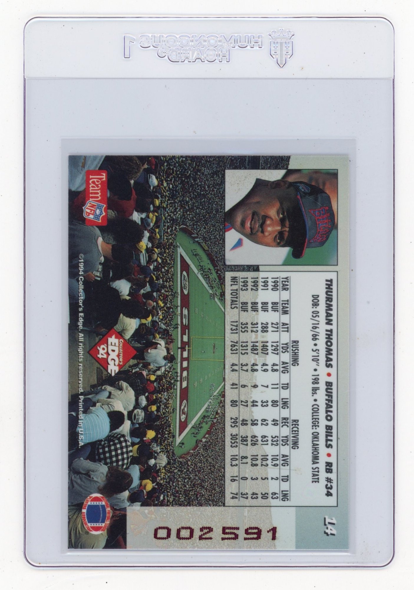 1994 Collector's Edge Thurman Thomas 1st Day Gold Football Card