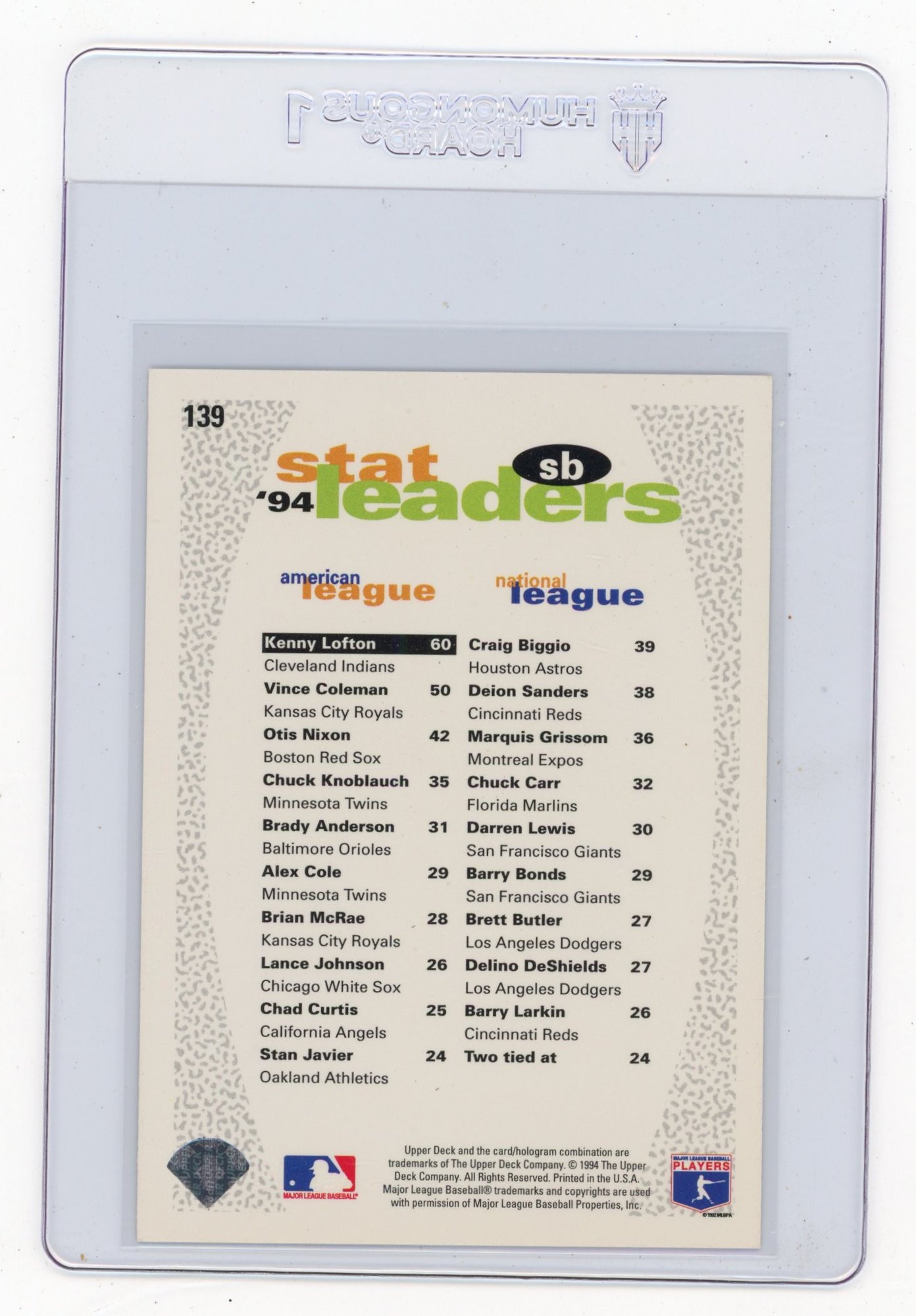 1994 Upper Deck Collector's Choice Kenny Lofton Special Edition Stat Leaders Baseball Card