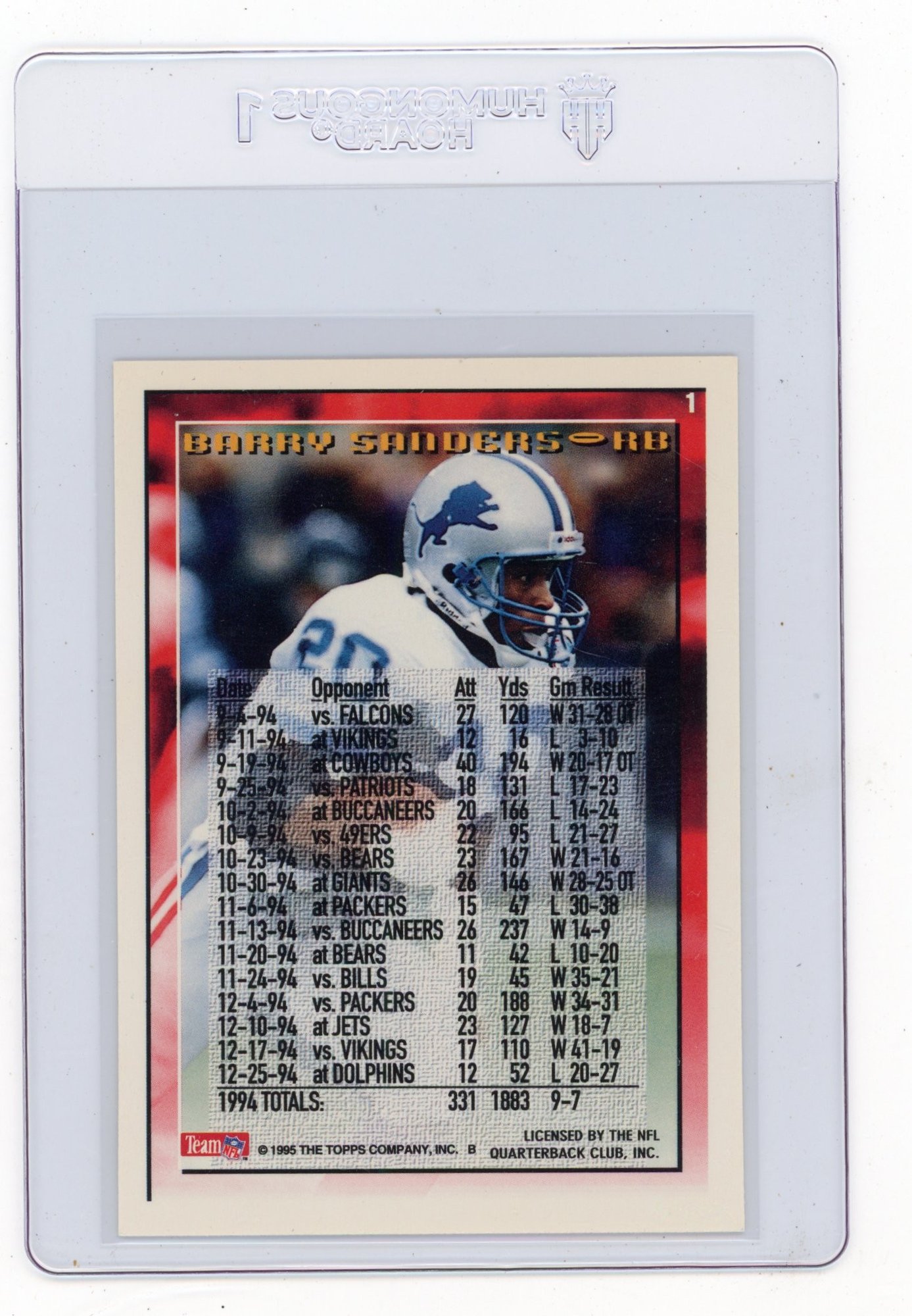 1995 Topps Barry Sanders 1000 Yard Club Football Card
