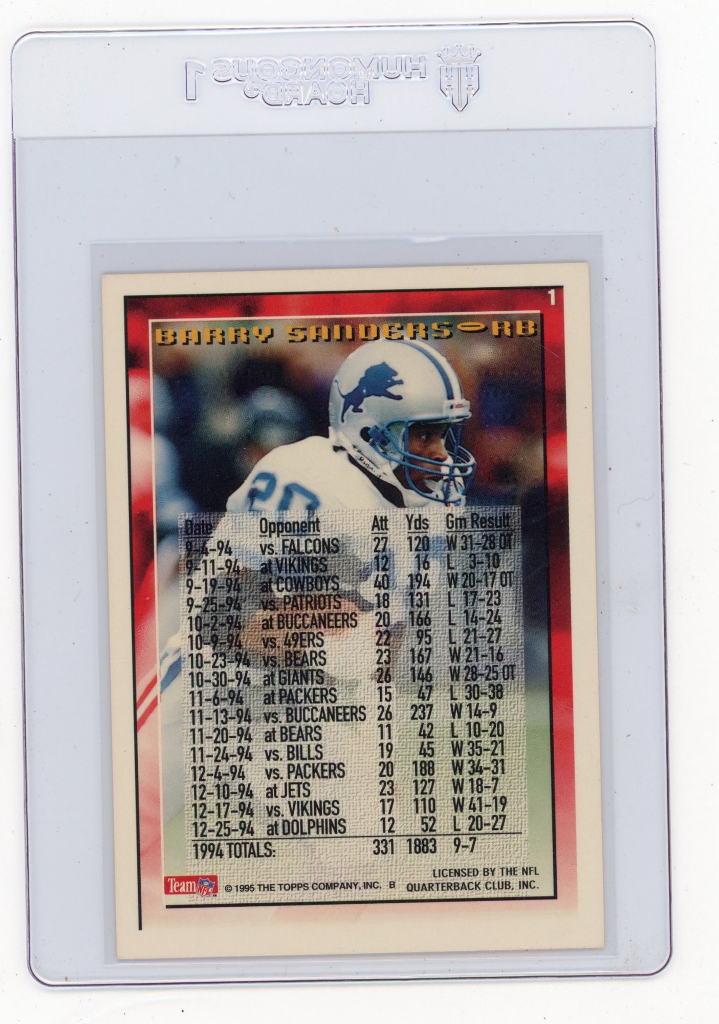 1995 Topps Barry Sanders 1000 Yard Club Football Card
