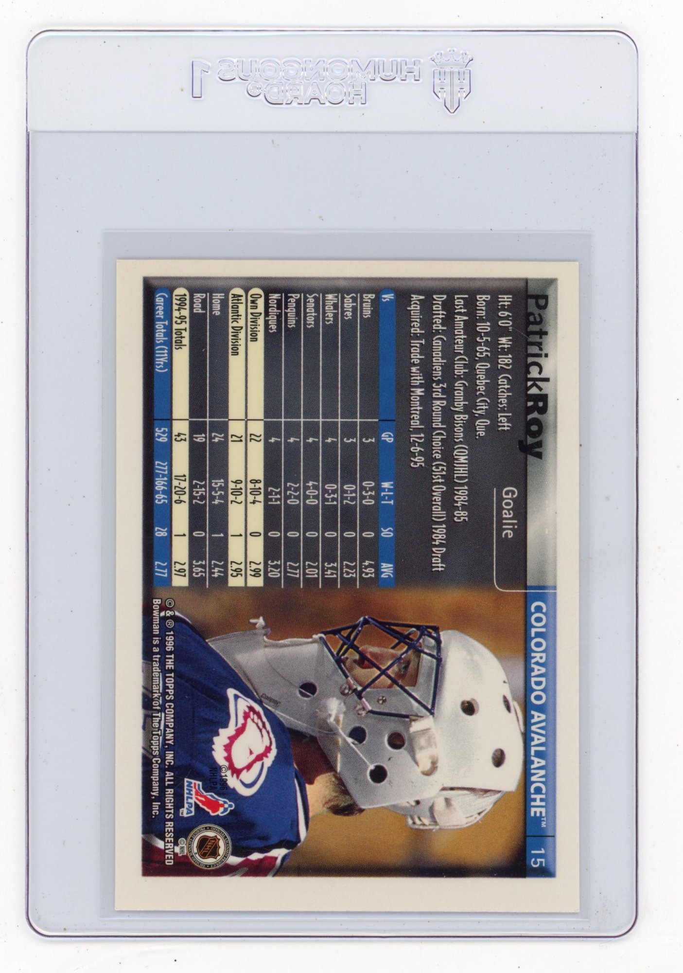 1996 Bowman Patrick Roy Hockey Card