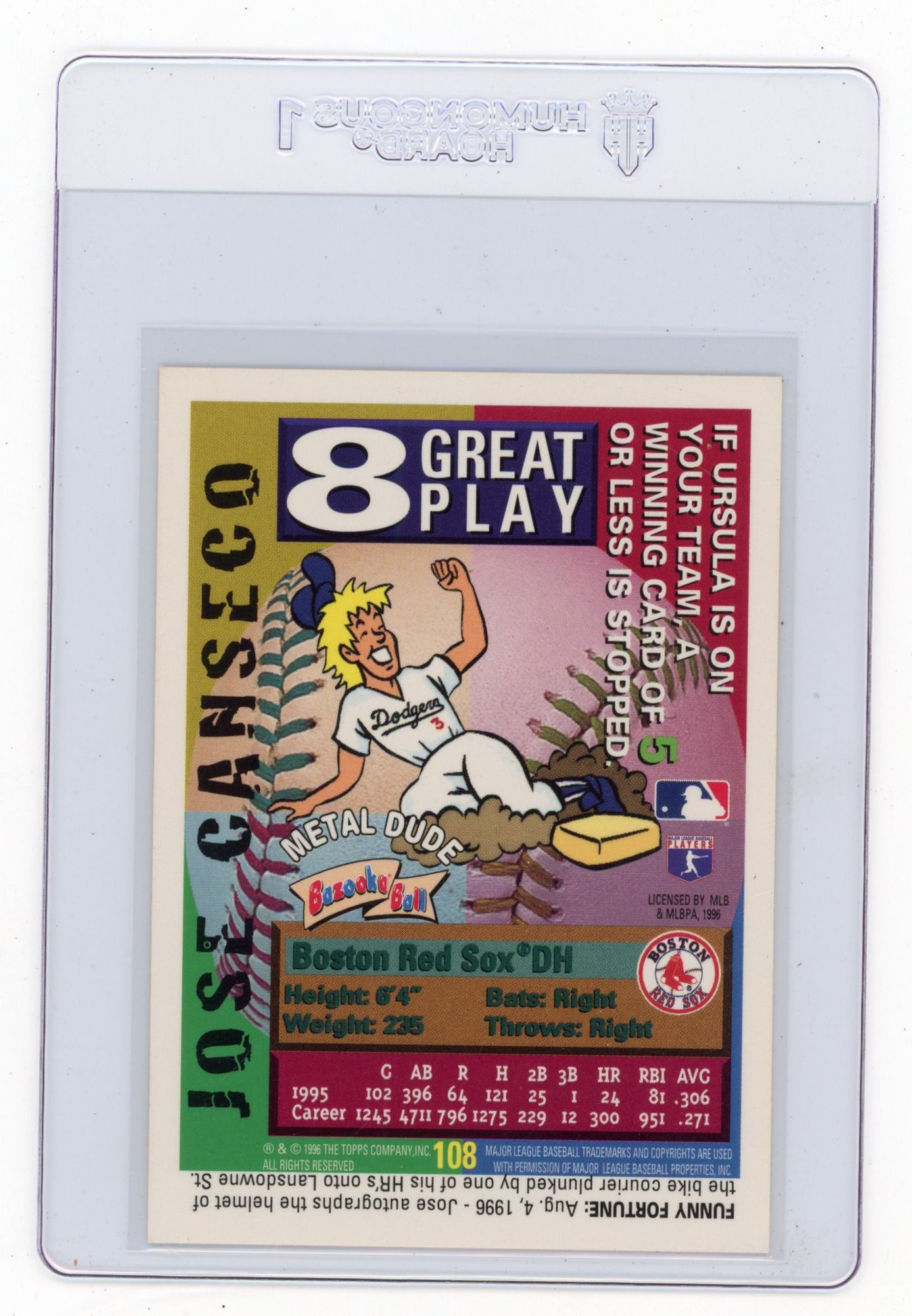 1996 Topps Bazooka Jose Canseco Baseball Card