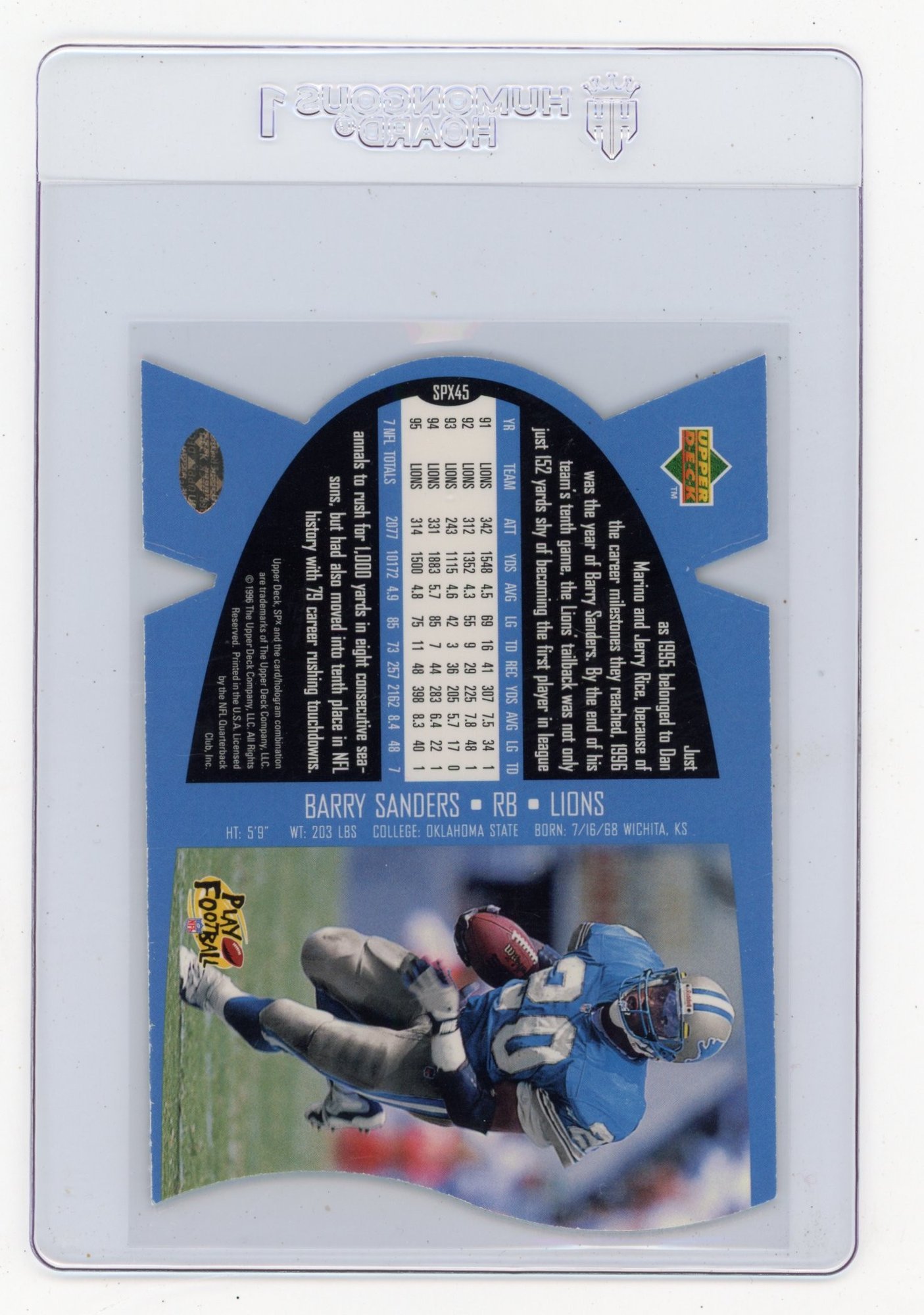 1996 Upper Deck SPx Barry Sanders Die Cut Football Card