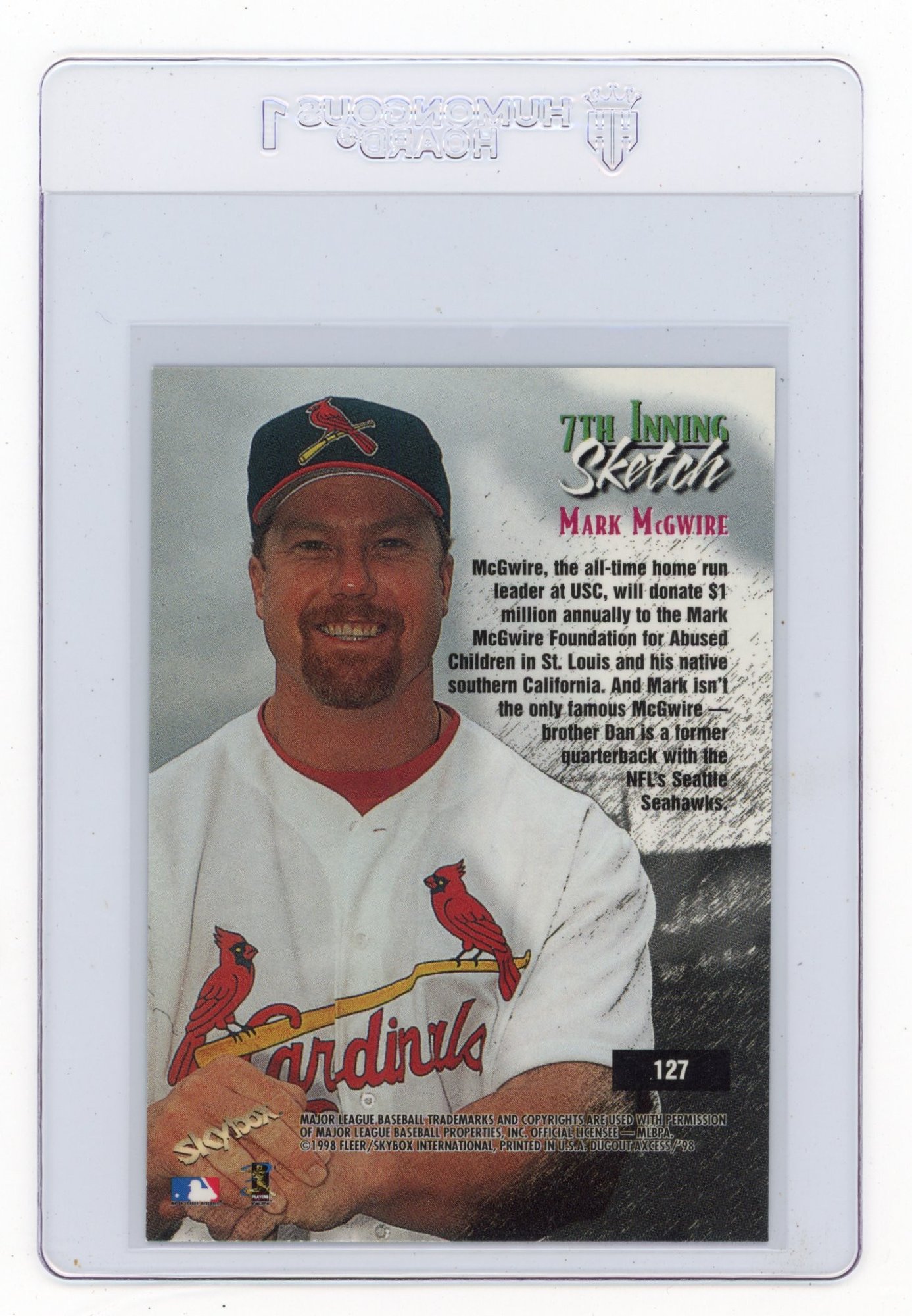 1998 Fleer Skybox Dugout Access Mark McGwire 7th Inning Sketch Baseball Card