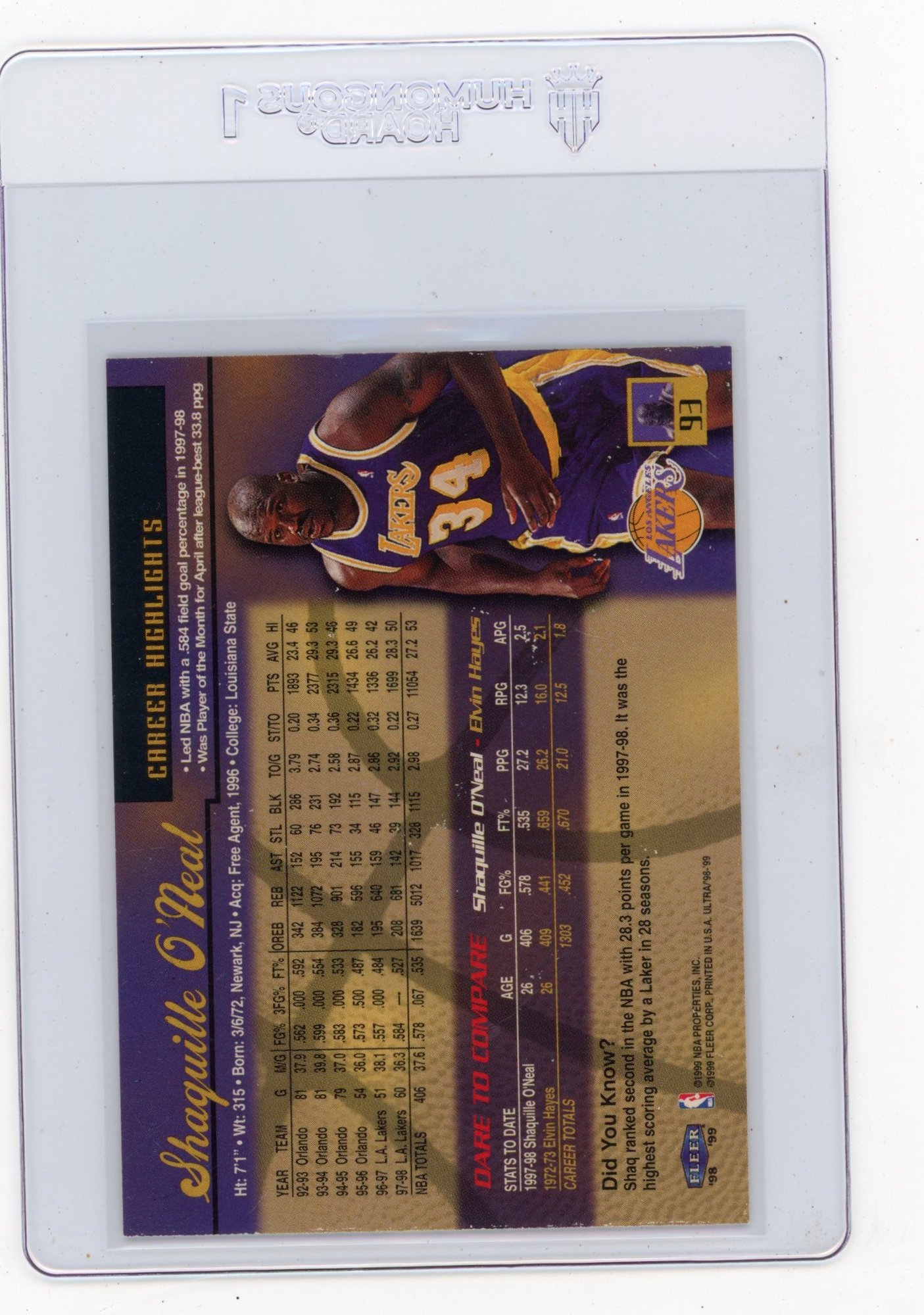 1998 Fleer Ultra Shaquille O'Neal Basketball Card