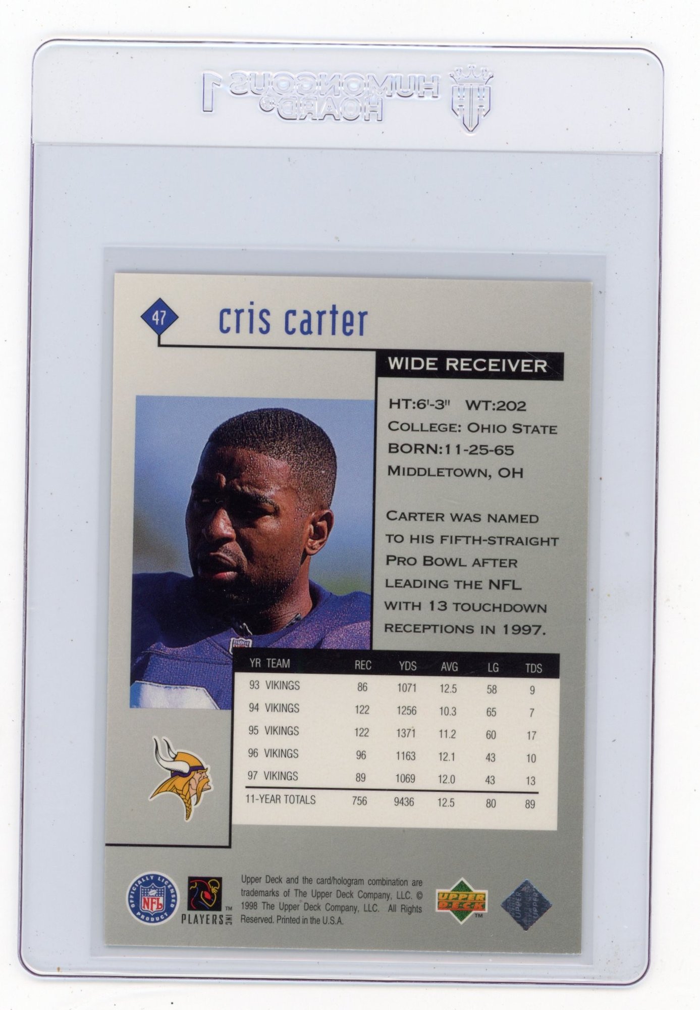 1998 Upper Deck Black Diamond Cris Carter Football Card
