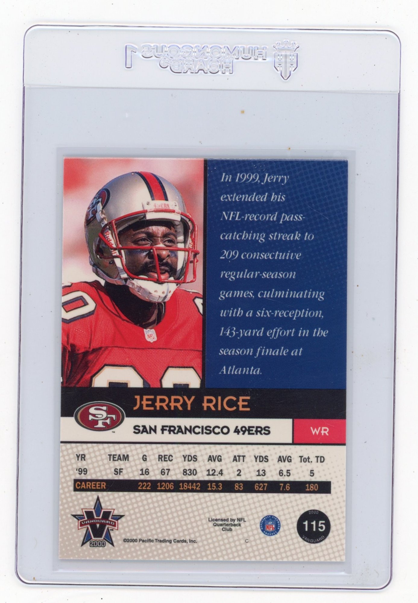 2000 Pacific Vangaurd Jerry Rice Football Card