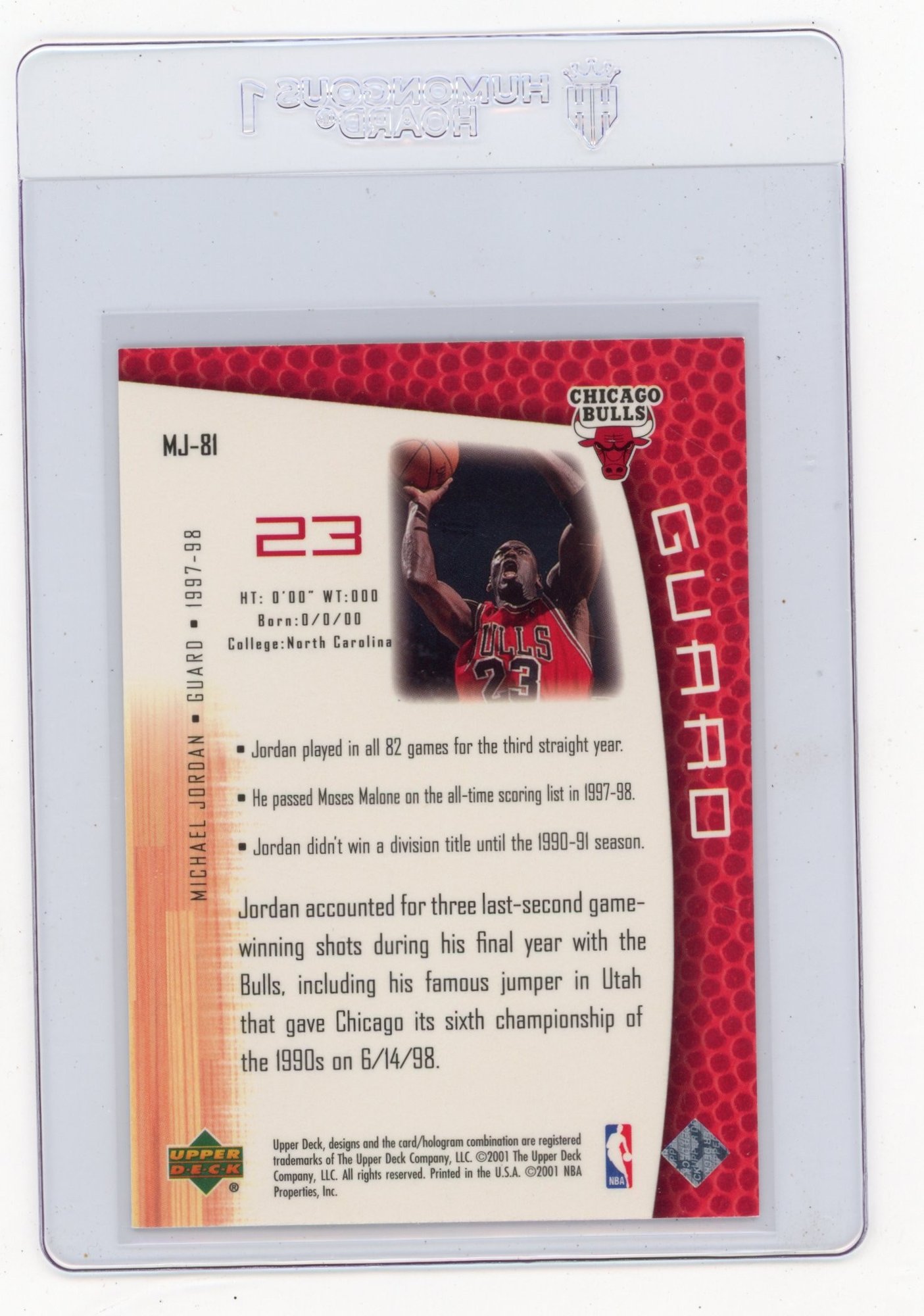 2001 Upper Deck Michael Jordan MJ's Back Basketball Card