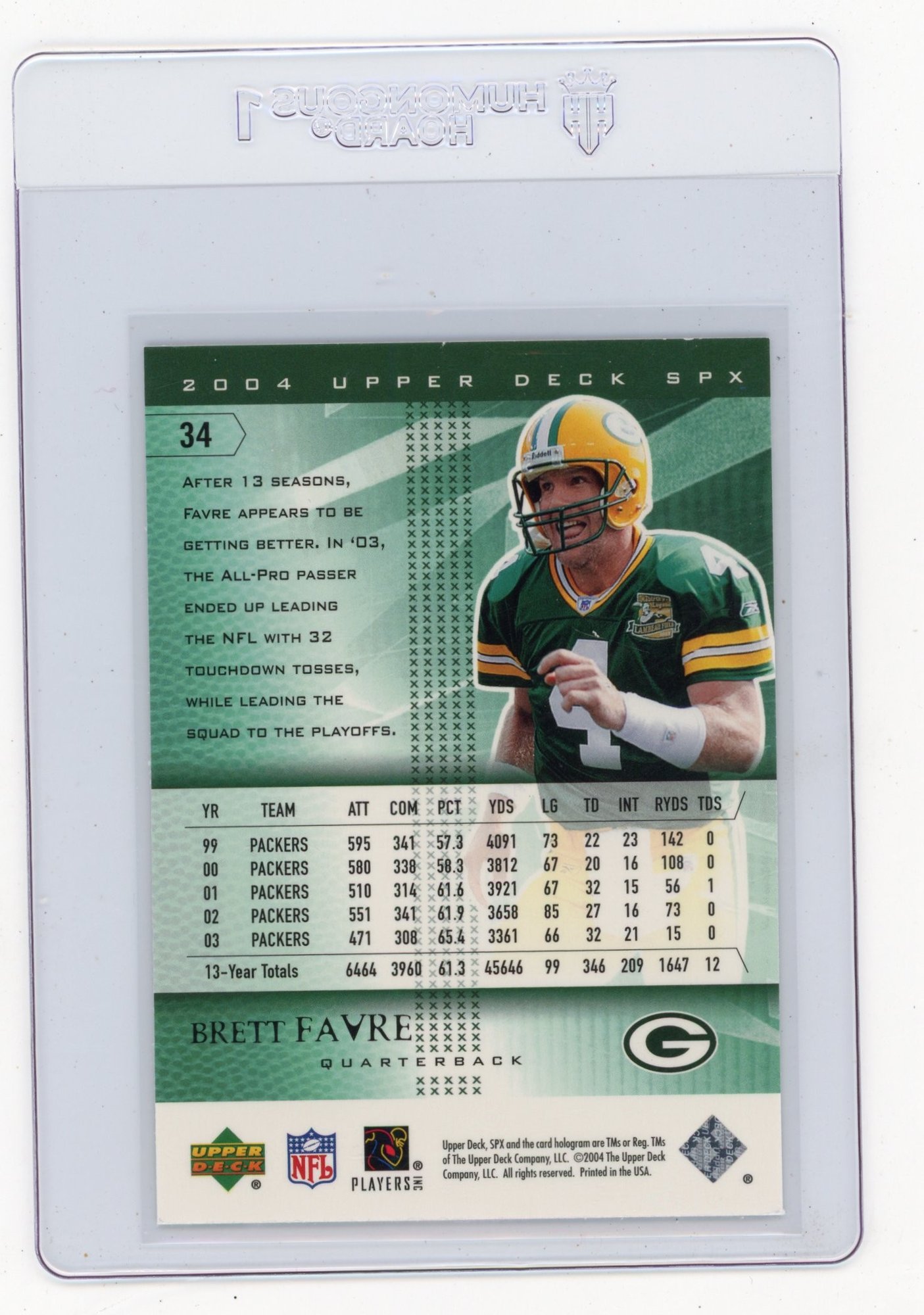 2004 Upper Deck SPx Brett Favre Football Card