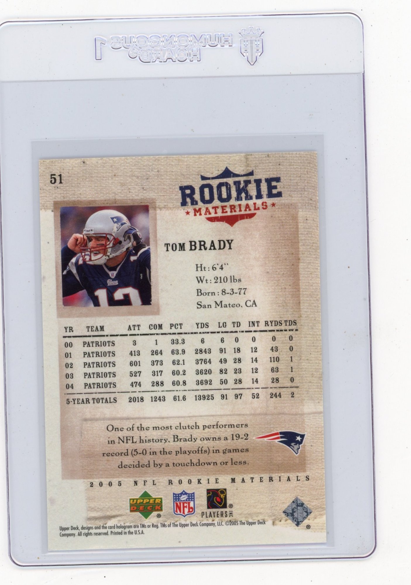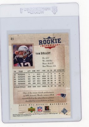 2005 Upper Deck Rookie Materials Tom Brady Football Card