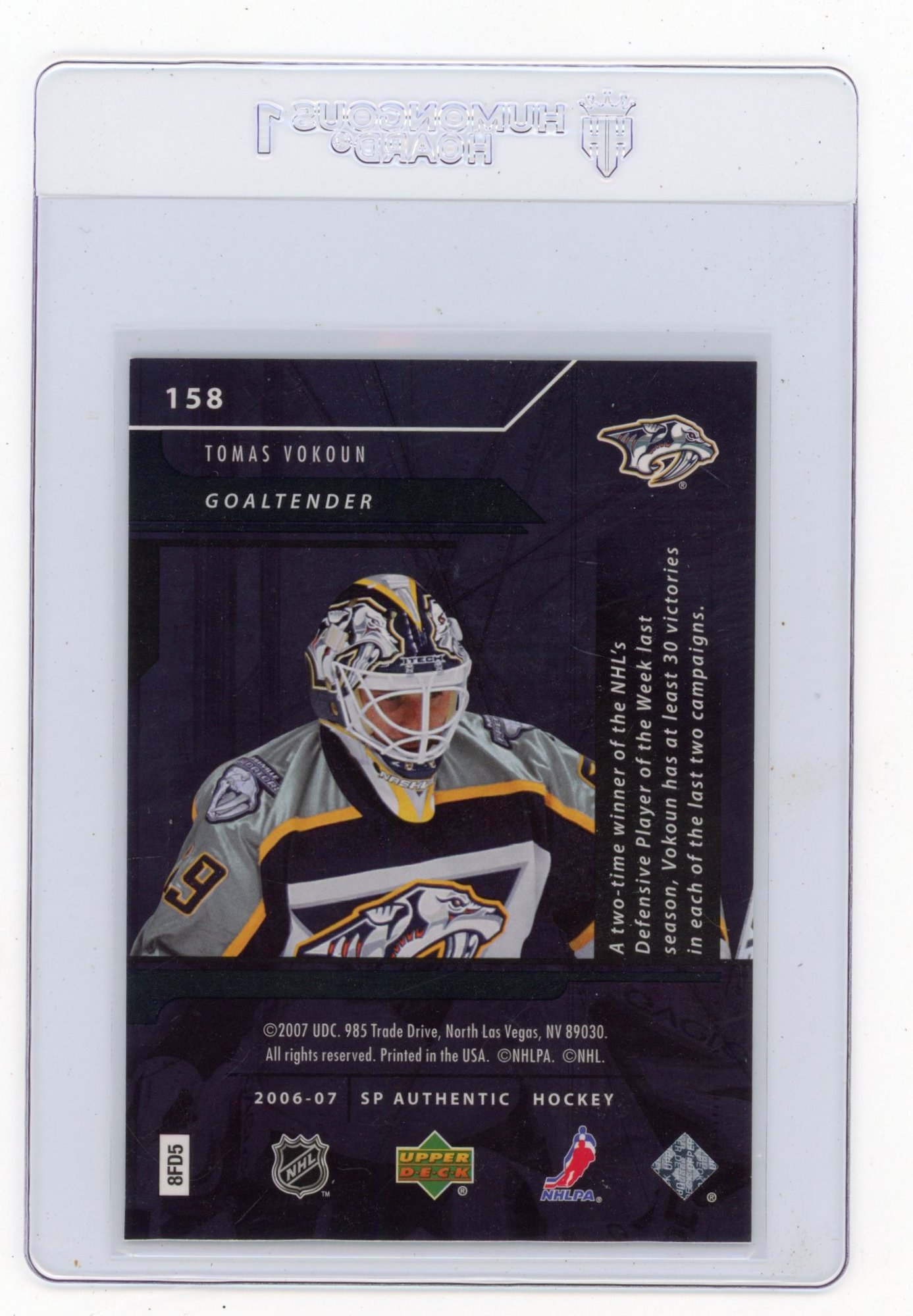 2006 Upper Deck SP Authentic Tomas Vokoun SP Notables Limited Hockey Card #'d To 100