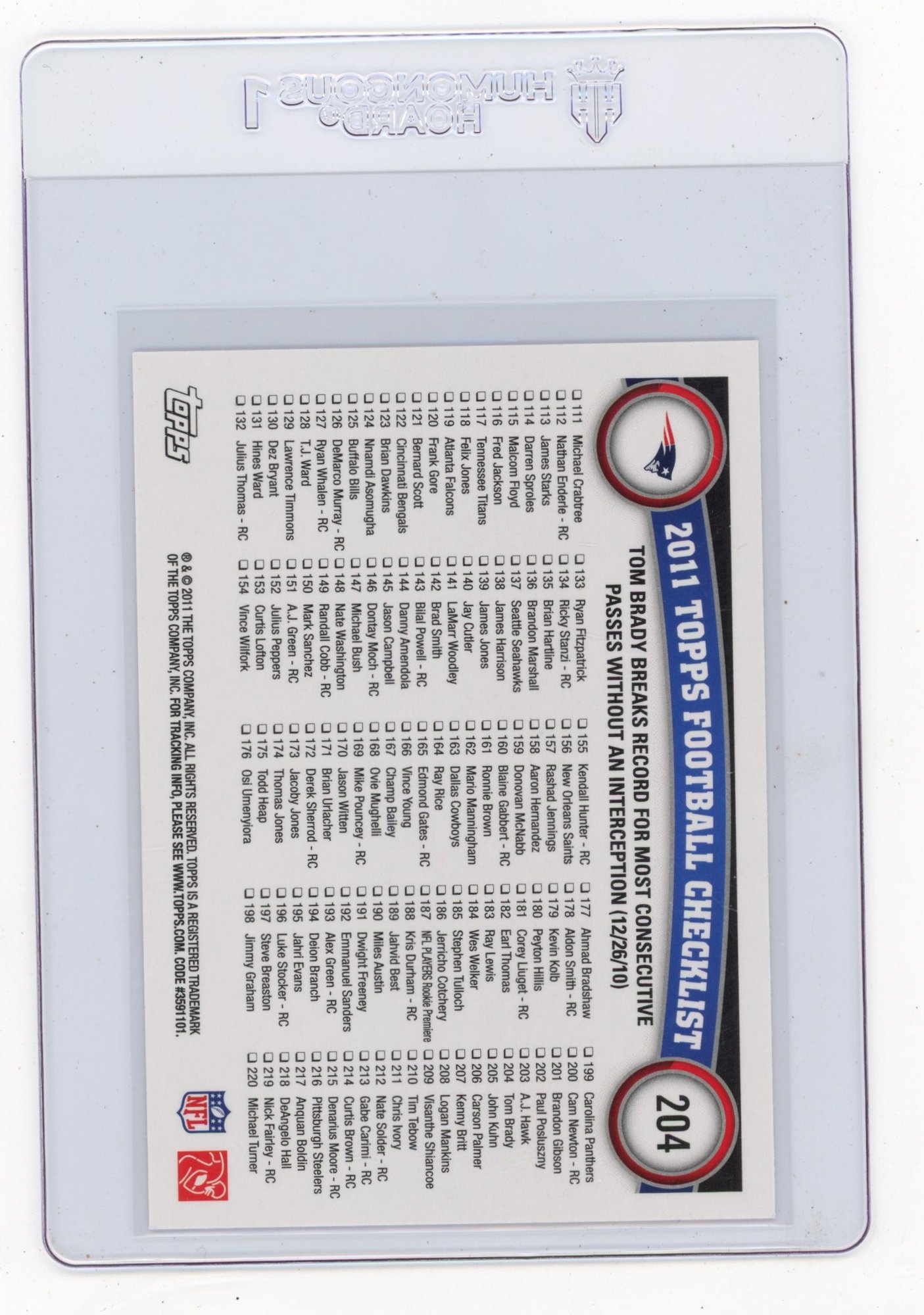 2011 Topps Tom Brady Record Breaker Checklist Football Card