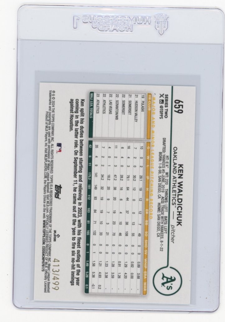 2024 Topps Ken Waldichuk Green Foilboard Baseball Card #'d To 499