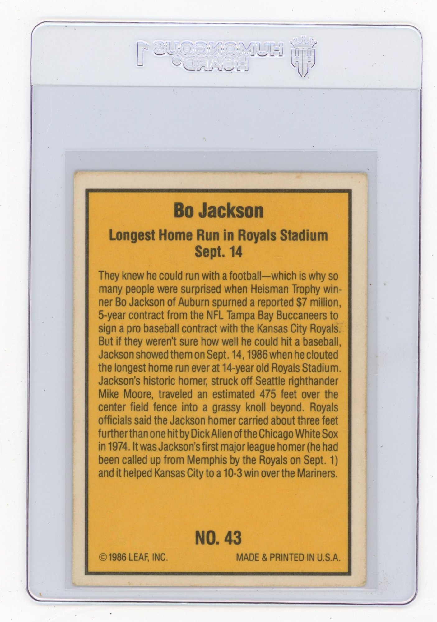 Bo Jackson Rookie Card 1986 Donruss Highlights Baseball Card