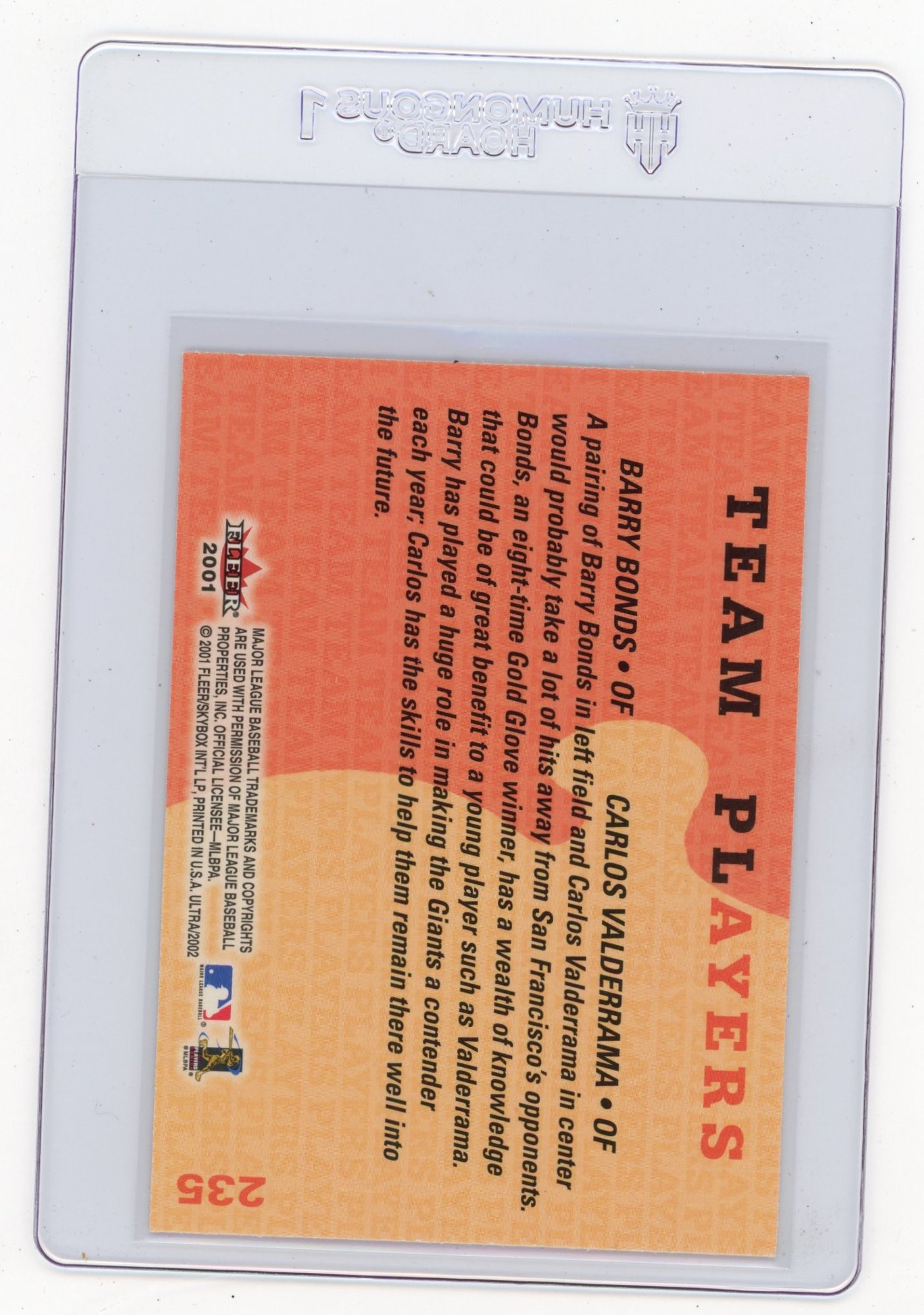 2001 Fleer Ultra Barry Bonds Carlos Valderrama Team Players Baseball Card