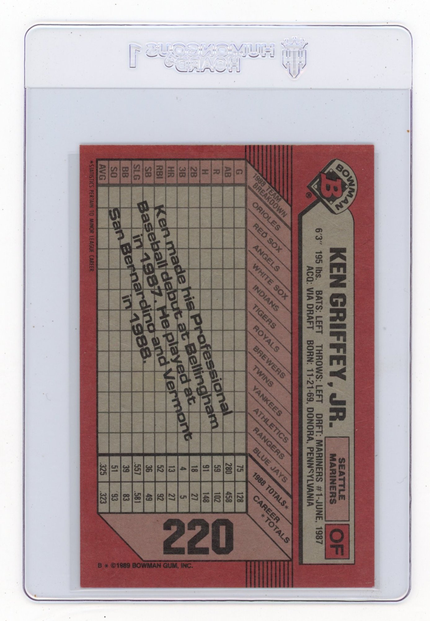 Ken Griffey Jr. Rookie Card 1989 Bowman Baseball Card