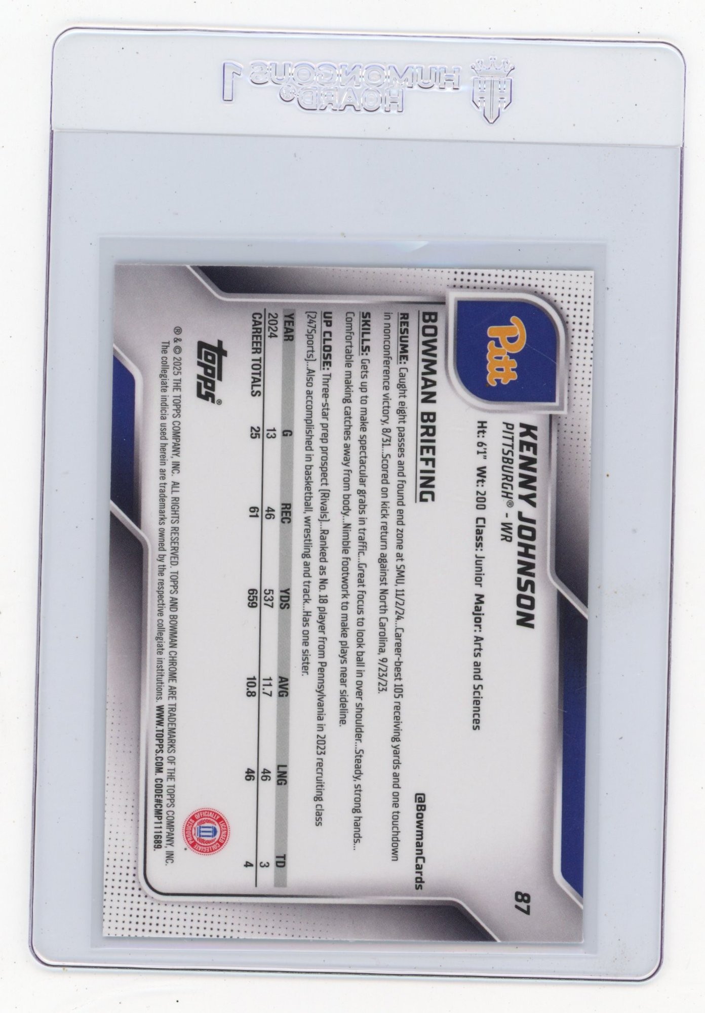 Kenny Johnson Rookie Card 2025 Bowman Chrome University Football Card