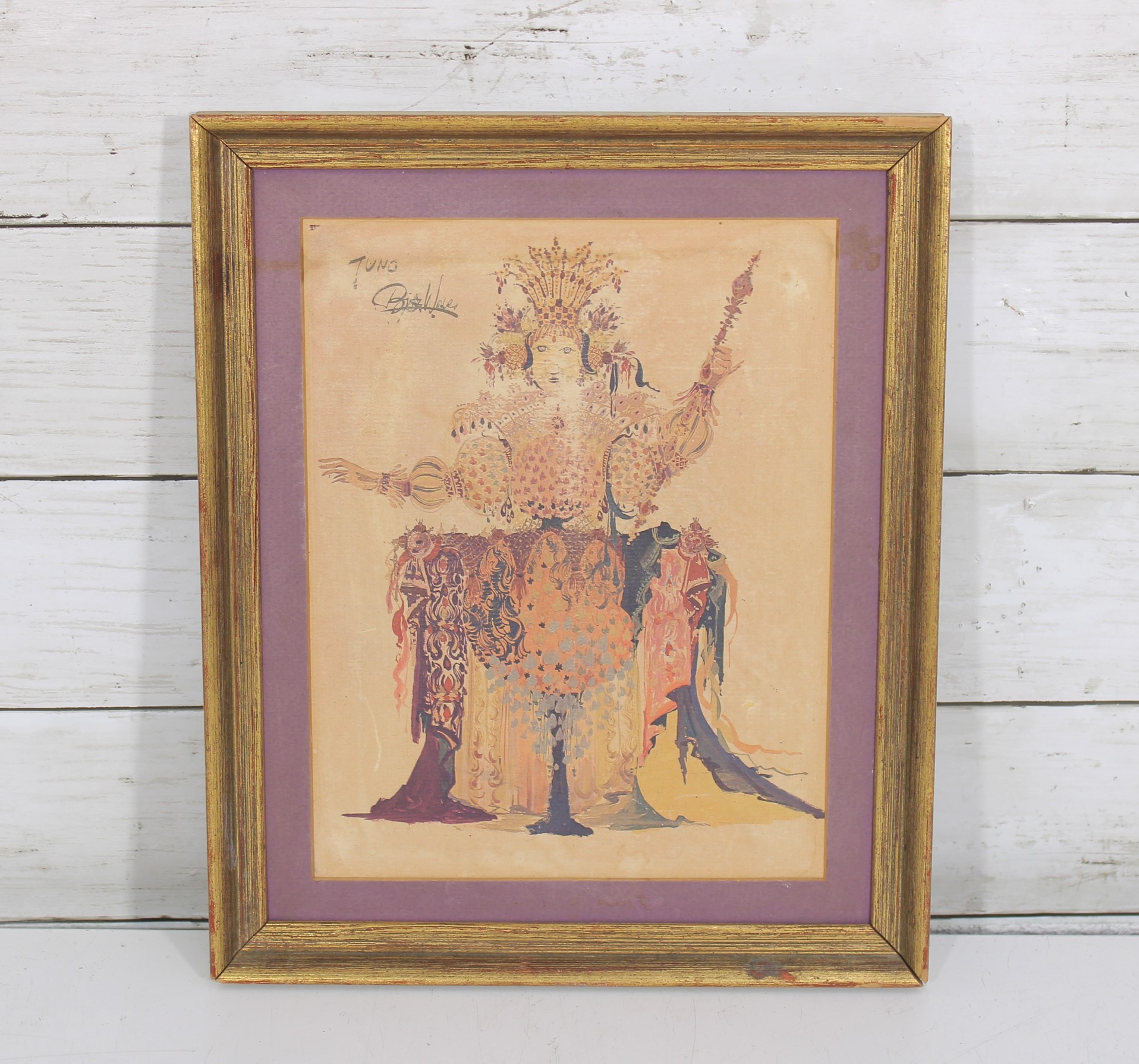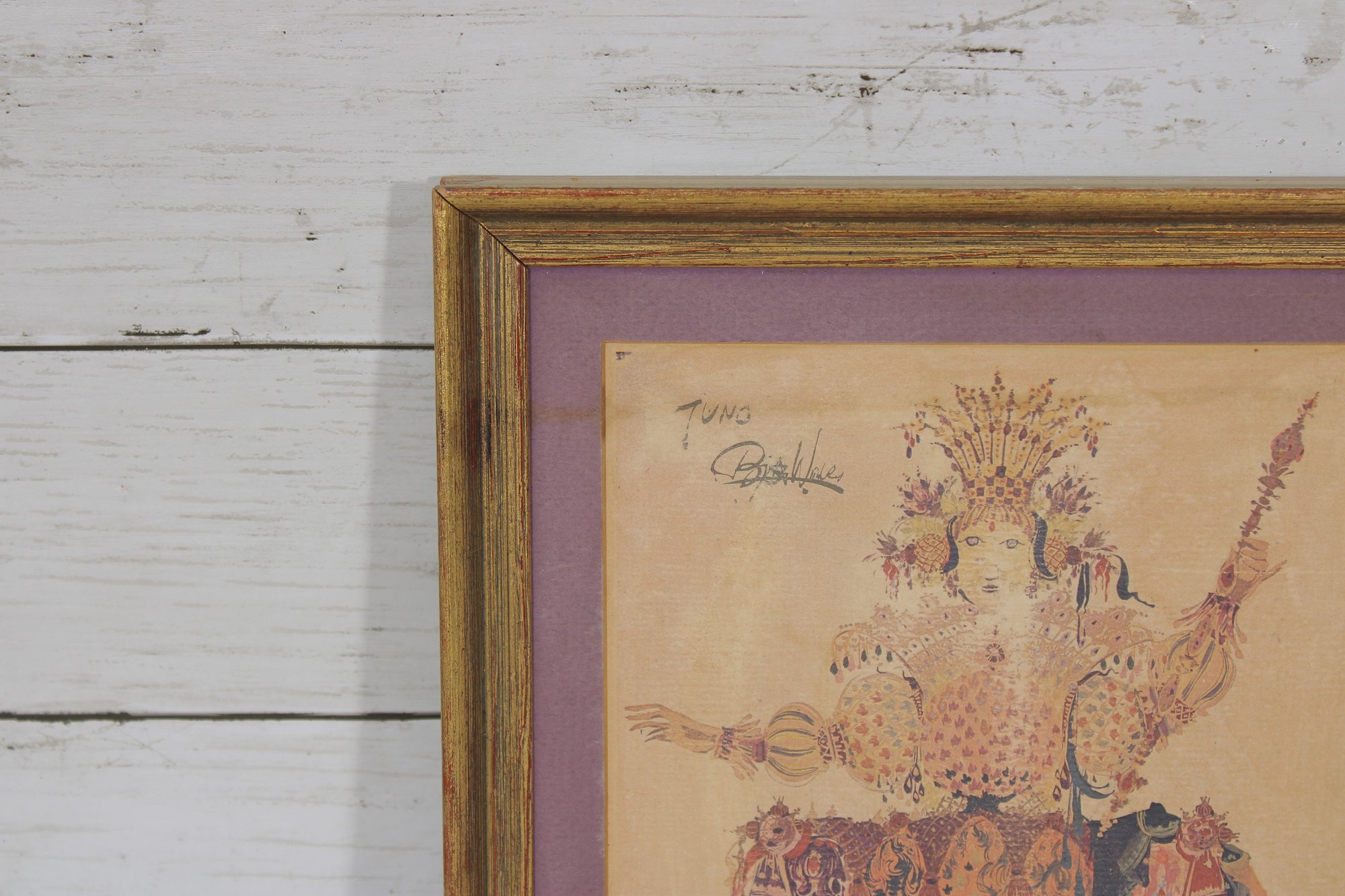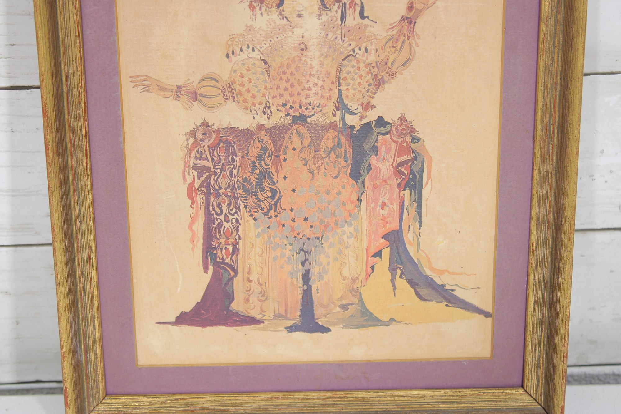 The print is matted in a complementary mauve tone and housed in a gold-tone frame, enhancing its vintage presentation.