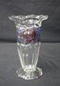 This elegant 10-inch glass vase combines clear and colored glass for a striking display. The vase features an intricate embossed rose design in a deep, rich hue around the upper portion, set against a beautifully textured background. With a scalloped rim and a flared base, this vase is perfect for showcasing floral arrangements or as a decorative accent on its own. The detailed craftsmanship and timeless design make it a unique addition to any collection or home decor. Ideal for lovers of vintage-inspired glassware and floral motifs.